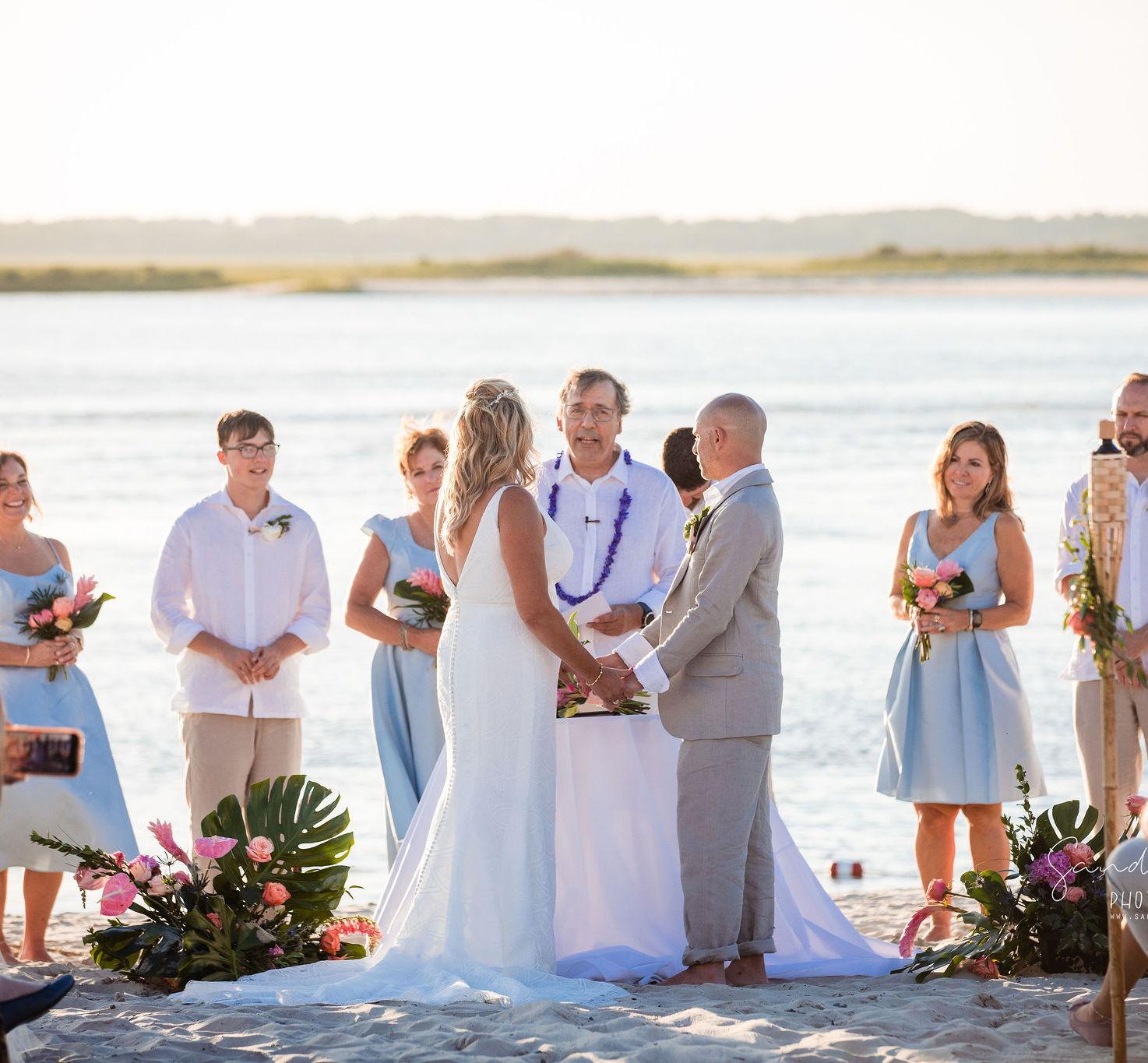 This package includes a welcome drink upon arrival, Beach Ceremony, Cocktail Hour with Cold Station, Tray Passed Hors d'Oeuvres, and a 4 Hour Reception with option for Plated or Family-Style Menu, Wedding Cake, Dessert Course, and a 5 Hour Open Bar with 2 Signature Drinks for the night.