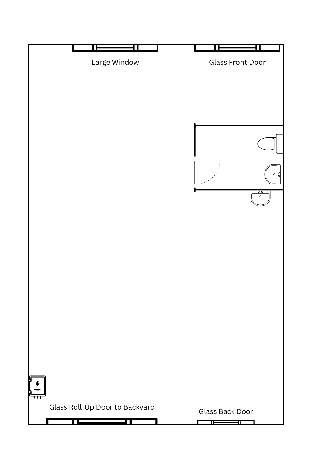 The indoor portion of the space is a total of 1,400 Square Ft. with seating for 40 and standing room for 60 guests. Outside of the space, there is a small street-facing patio in the front. In the back, there is a private community area with overhead string lighting. The glass door rolls up for view of the backyard and allowing a fresh ocean breeze.