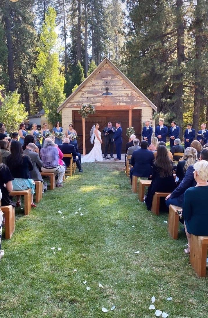 French doors open up to the back deck area with an amazing view of the mountains and a vast open meadow. Access to the meadow for playing frisbee, playing corn hole, throwing a football, etc. is provided with your stay.