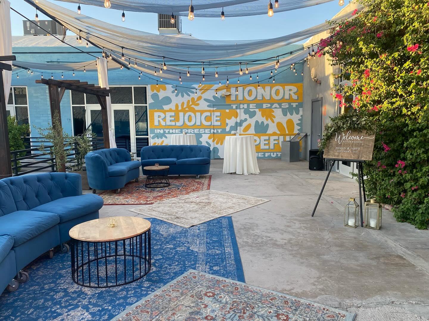 At The Doyle, we specialize in providing a stunning and versatile backdrop for your wedding day. This 1949 vintage-industrial venue, located in the heart of Downtown Las Vegas, offers a unique and memorable setting for couples seeking a space with character. Our open, light-filled interior, featuring a dramatic barrel ceiling and original wood trusses, provides a warm and inviting atmosphere that is ready to be transformed to match your unique vision. The whitewashed walls and industrial details serve as a neutral yet stylish canvas, allowing you to easily customize the decor and create the perfect ambiance for your celebration. The seamless transition to our large, private courtyard allows for flexible event flow, making it simple to host both your ceremony and reception in one beautiful location