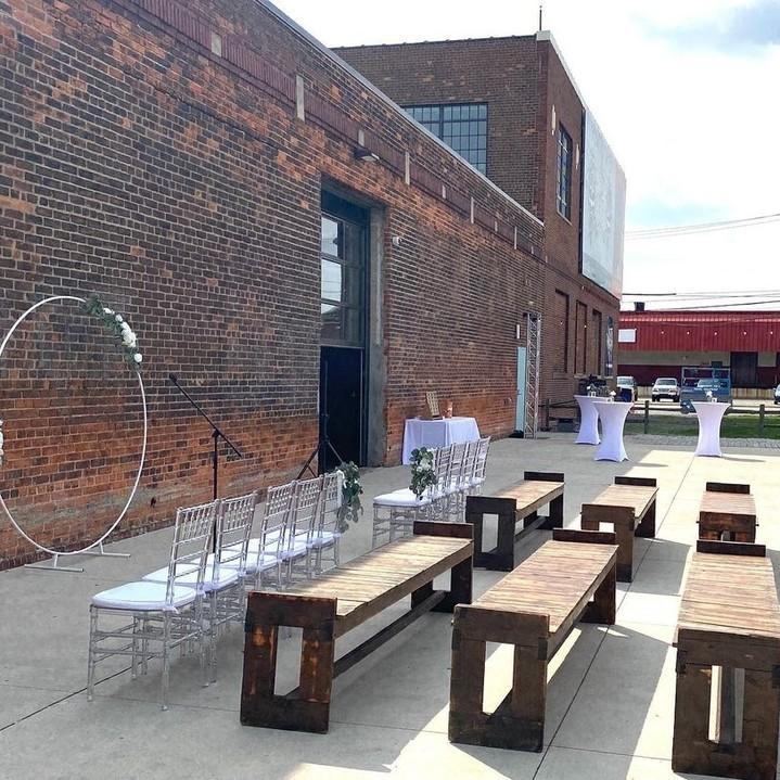 The Eastern is a wonderful industrial, versatile venue in the heart of Eastern Market in downtown Detroit! This venue comes as a blank slate. So many different options as to how you can dress this venue up for a wedding/event. Be sure to use the few large wooden tables it comes with for your buffet table, hors d’oeuvre table, seating outdoors, head-table etc. Look no further than The Eastern or The Norwood for your wedding! I would recommend this venue to any couple looking to have a wedding in a unique spot, rather than a ballroom.