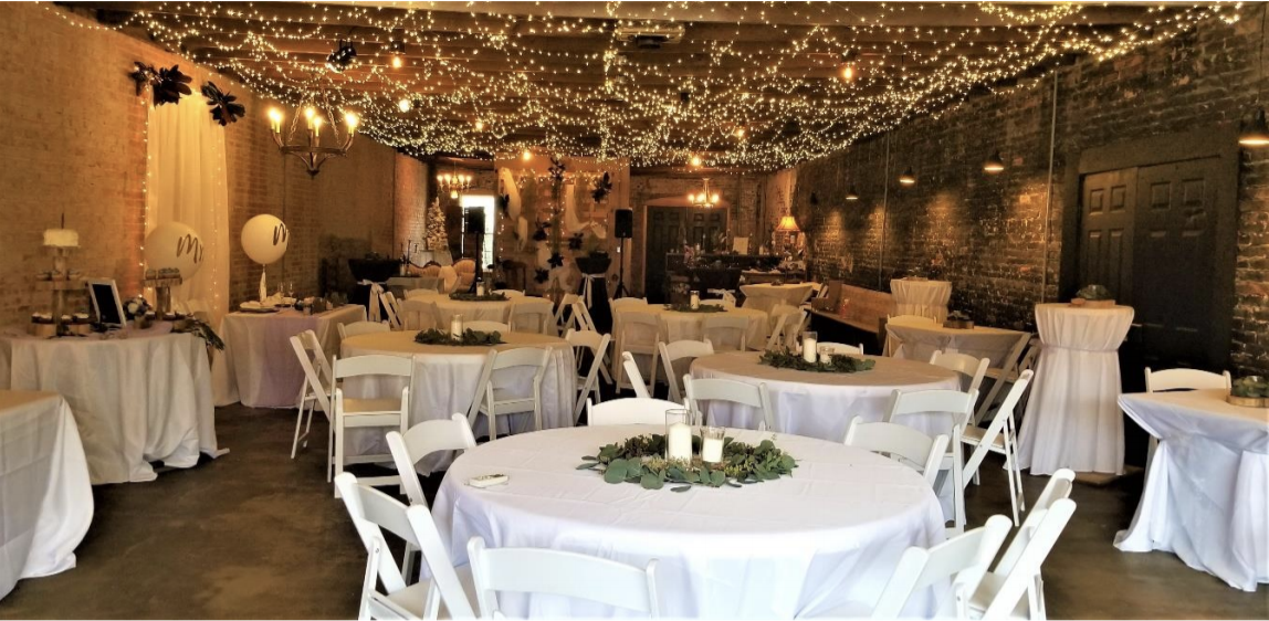 Tables and chairs plus staging furniture provided • Can easily seat up to 65 guests with room for dancing and food service • Two Bathrooms • Plenty of street and lot parking • Bride's Dressing Room • Refrigerator • Two entry doors – one with back alley entrance for delivery • Great support venue for The Eclectic Warehouse or The Woodlands • More guests can be accommodated by adding The Eclectic Local next door • Local accommodations are available close by – ask us about our offerings
