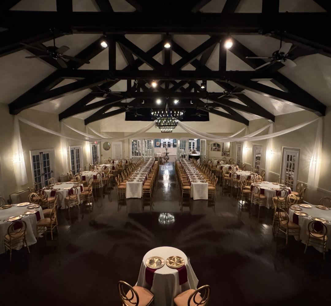 Includes 5 hour rental with club access 3:00 to 11:00 Choice of round or banquet tables and chair selection Ceremony fee of $5 per guest Food & Beverage Services provided by 5 In House Preferred Caterers not included with any rental package.