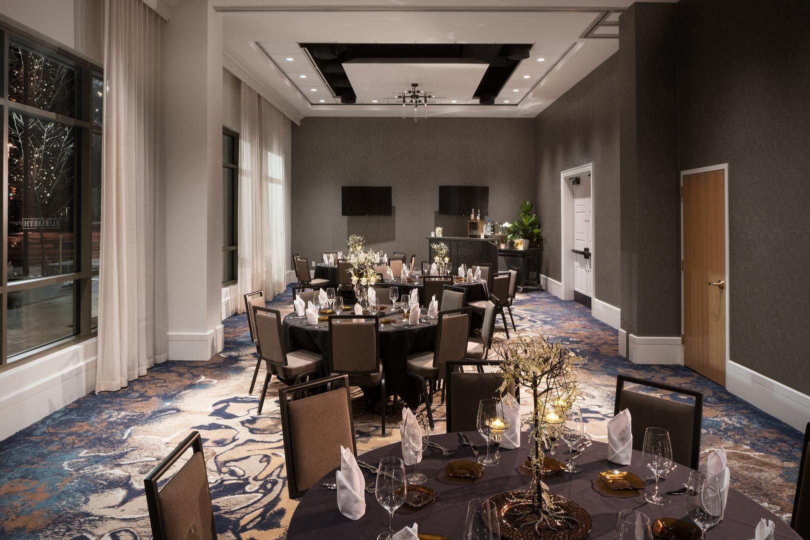 Overlooking Chestnut Street in Old Town Fort Collins, our intimate 1,088 square foot Chestnut Room features floor-to-ceiling windows, high-ceilings, and four flat screen monitors - perfect for a wedding slideshow or film. This light filled and beautiful ballroom is perfect for rehearsal dinners, welcome parties, day-after brunches and intimate wedding receptions. We can also accommodate ceremonies of up to 80 guests for anyone looking for an indoor location!