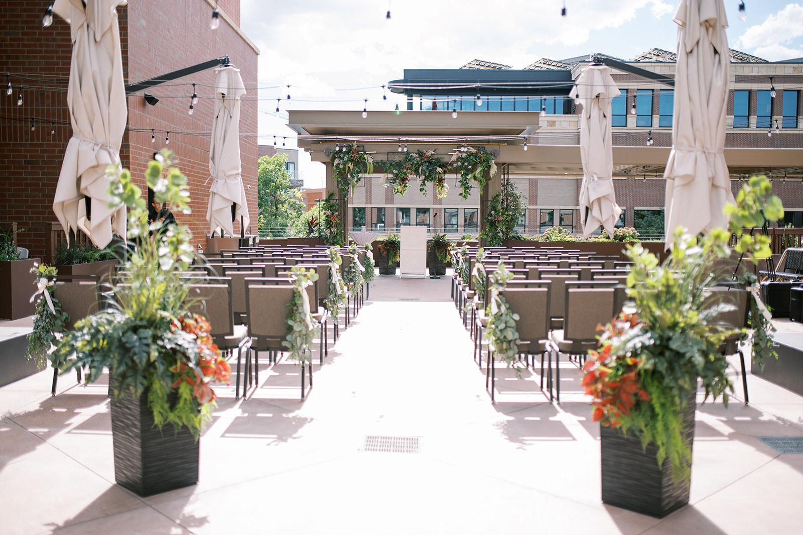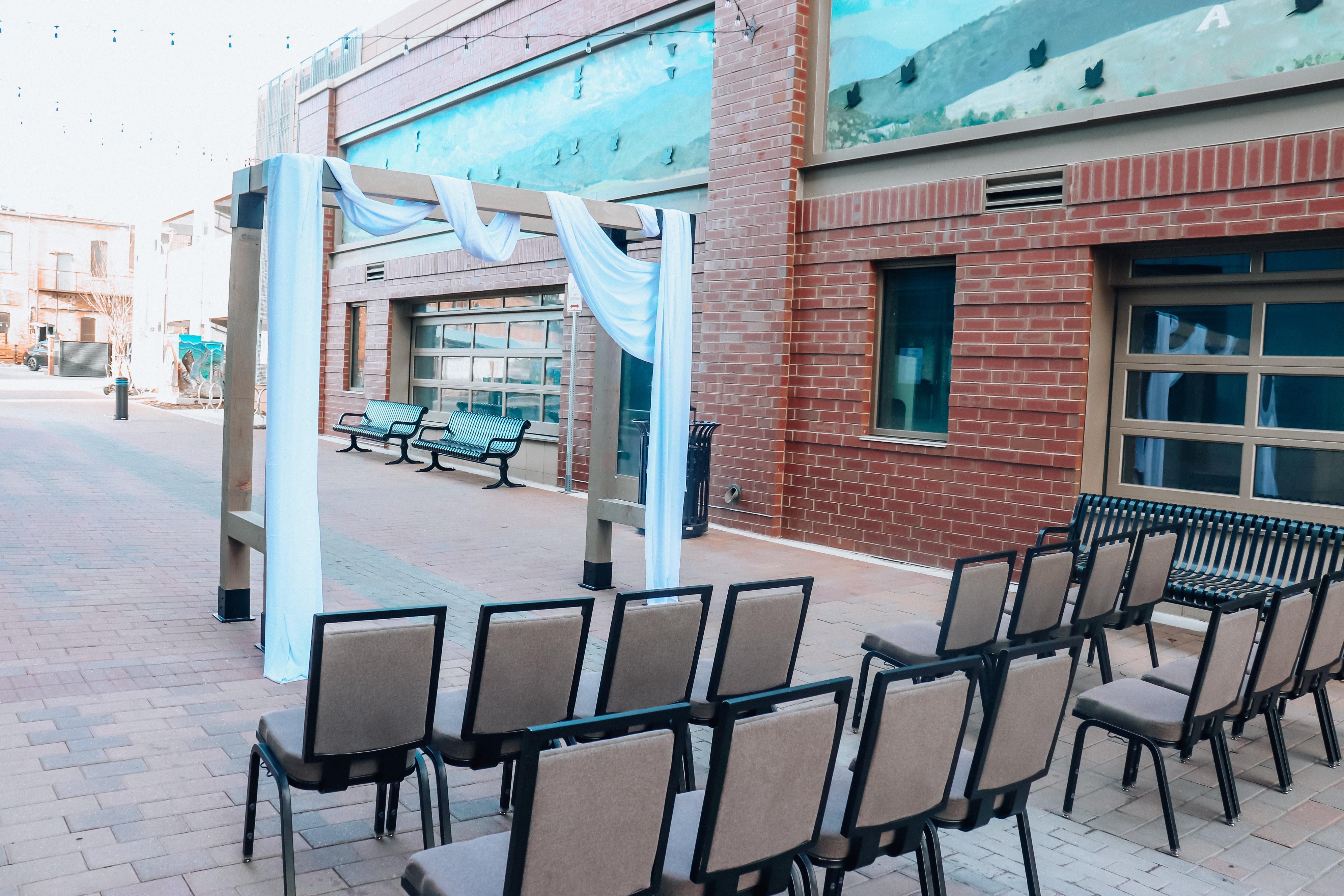 This space is just ‘so Fort Collins’! In historic Firehouse Alley, adjacent to our Magic Rat space is a fabulous location for wedding ceremony. With the historic alleyways of old town Fort Collins stretched in front of you and an ideal entry aisle from the front of the hotel, this space makes for a classically urban feeling ceremony location with small town touches.