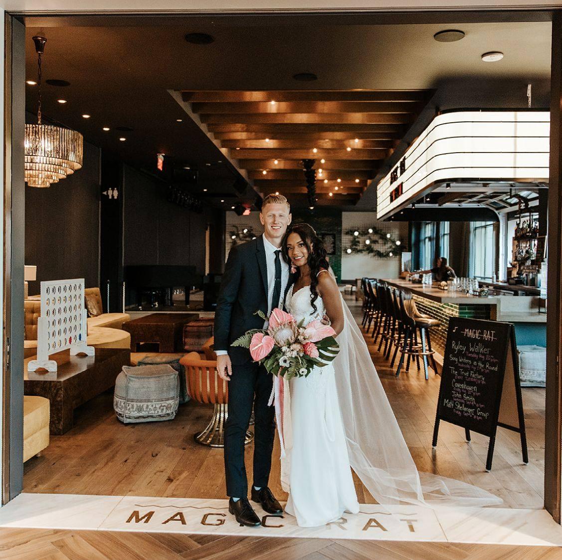 Refined and a bit off beat, Magic Rat, The Elizabeth Hotel’s live music venue, is a conversation-worthy venue perfect for nontraditional ceremonies, lively, music-filled receptions, welcome parties, day-after brunches and bachelor/bachelorette parties. Including an indoor stage and large outdoor patio spilling onto historic Firehouse Alley, this venue truly embodies the spirit of Fort Collins. Plus, look up at the marquee and you’ll see your name in lights!