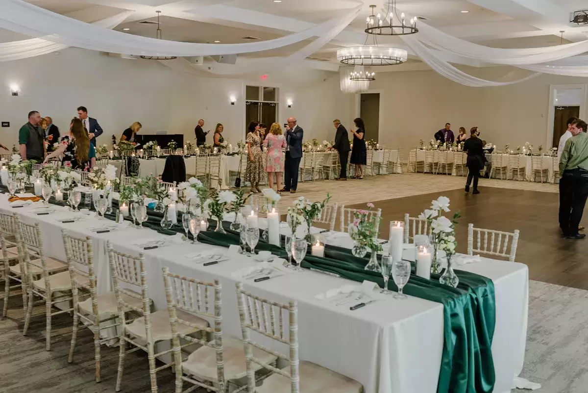 All-Inclusive Weddings: -Floral centerpieces designed for you -Wedding cake designed by you -Full catering -Bar fully customizable to meet your needs -DJ for 5 hours reception -Floor Length Linens with approximately 80 linen color options -Refreshments standard: coffee, tea, soda, and water -Service staff -Tables/chairs/flatware/goblets/place settings -Full set up and tear down -Venue