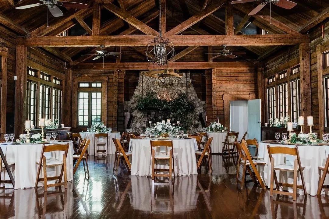 Nestled on 100 picturesque acres in Macon, Georgia, The Estate at Stone Creek offers an unrivaled setting for your celebration. Its beautifully restored 100-year-old lodge features 2,900 square feet of elegantly appointed event space with a rustic chic ambience. High ceilings, original wood, and two grand fireplaces make this historic venue a wonderful place to host an event. If you prefer to celebrate outside, The Estate’s sprawling grounds offer an idyllic backdrop for all your wedding festivities. Exchange your vows in front of the serene private lake, pose for pictures by the 175-year-old barn, or dine al fresco on the lush lawn; anything is possible at this one-of-a-kind venue!