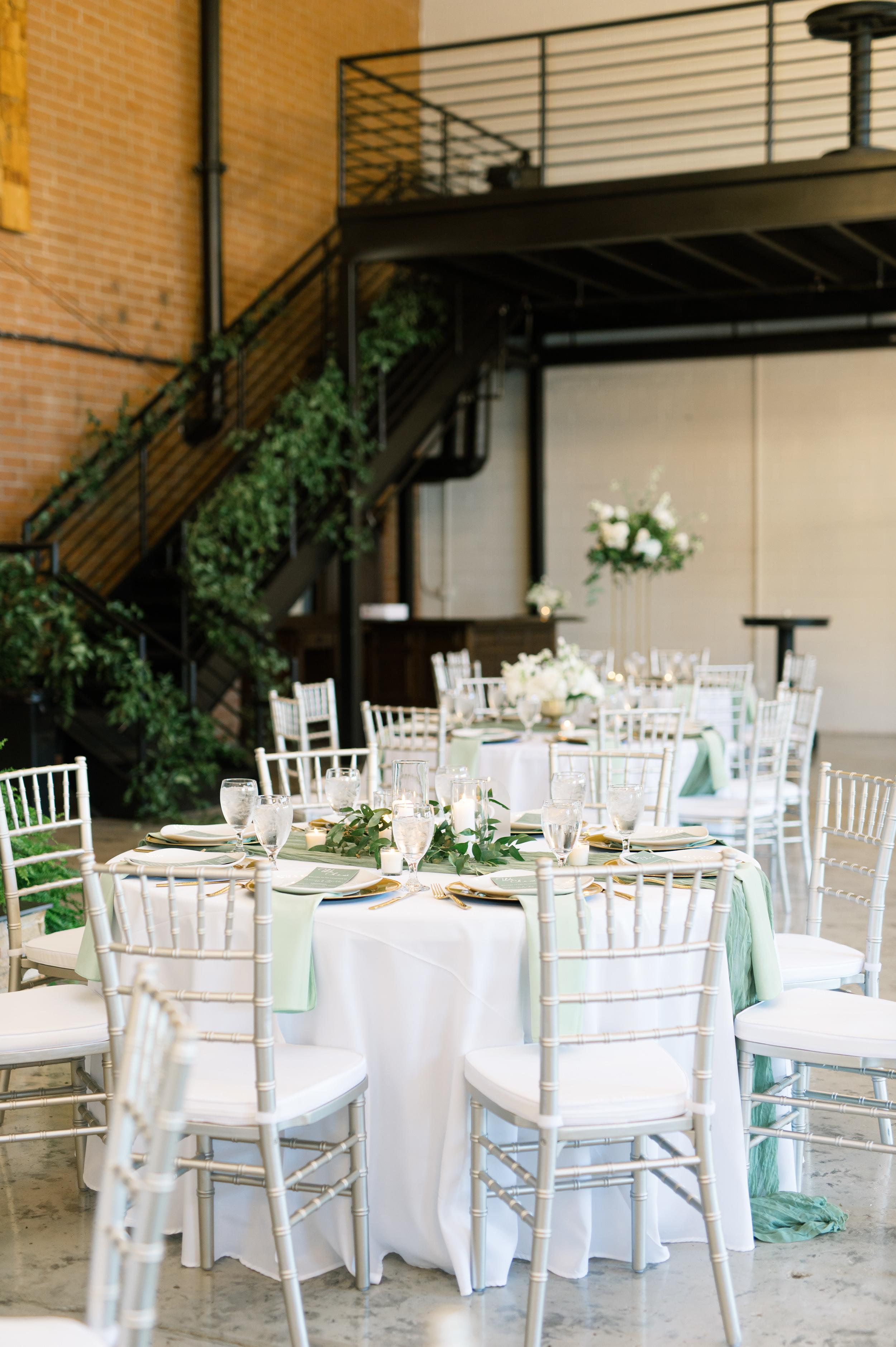 - Exclusive use for 12 continuous hours - 200 Wooden Champagne Chivari Chairs - (20) 60” Round Tables - (1) 48” Round Table - (8) 8’ Banquet Tables - (10) 6’ Banquet Tables - (1) 4’ Banquet Table - 8 Black Cocktail Tables - Dimmable/Adjustable lighting - Bridal Suite and Groom’s Room - Bar with back bar - Three optional cocktail hour spaces - Set up and break-down of ceremony and reception layout - Free parking available - Catering kitchen - In-house sound system