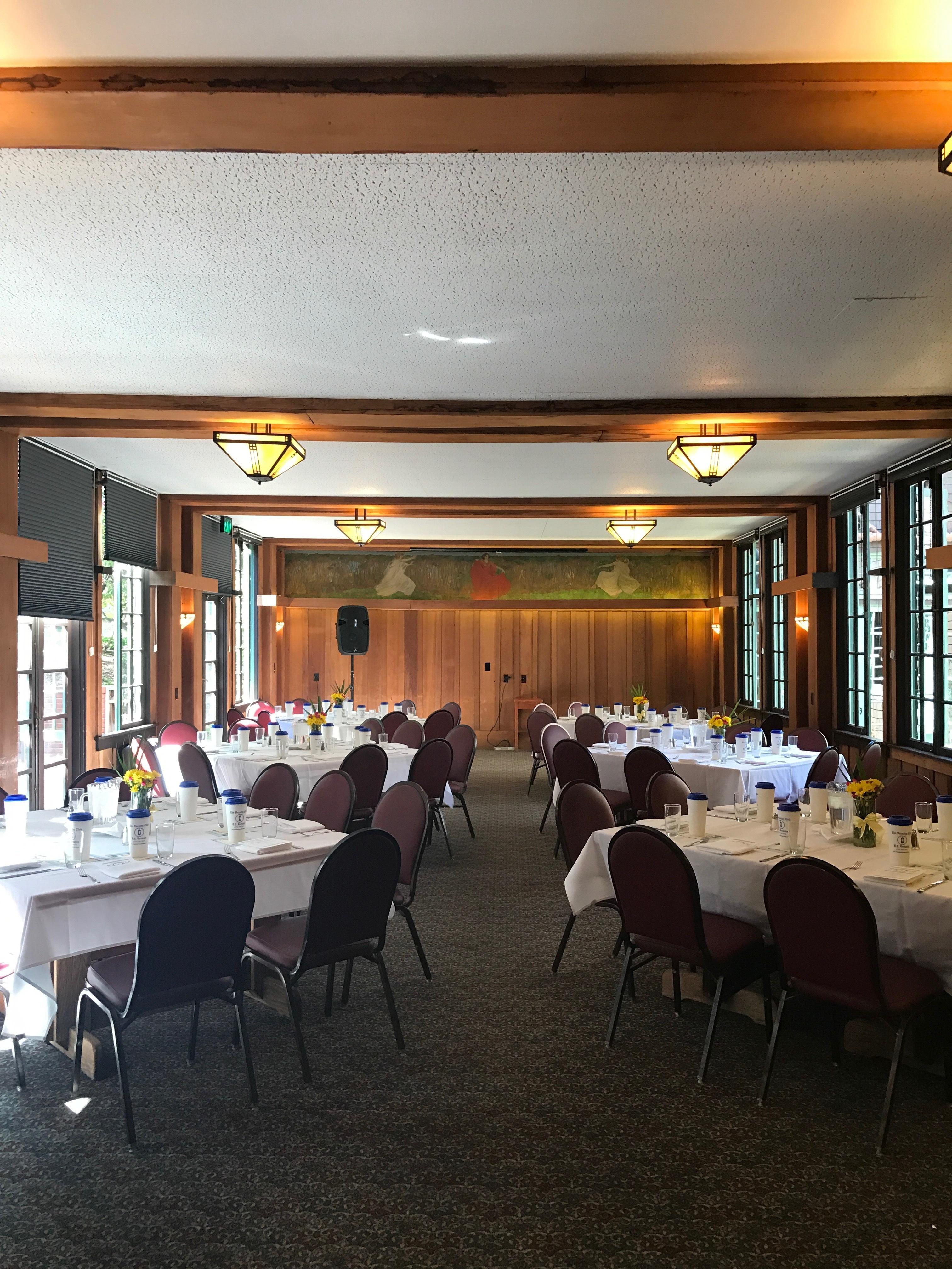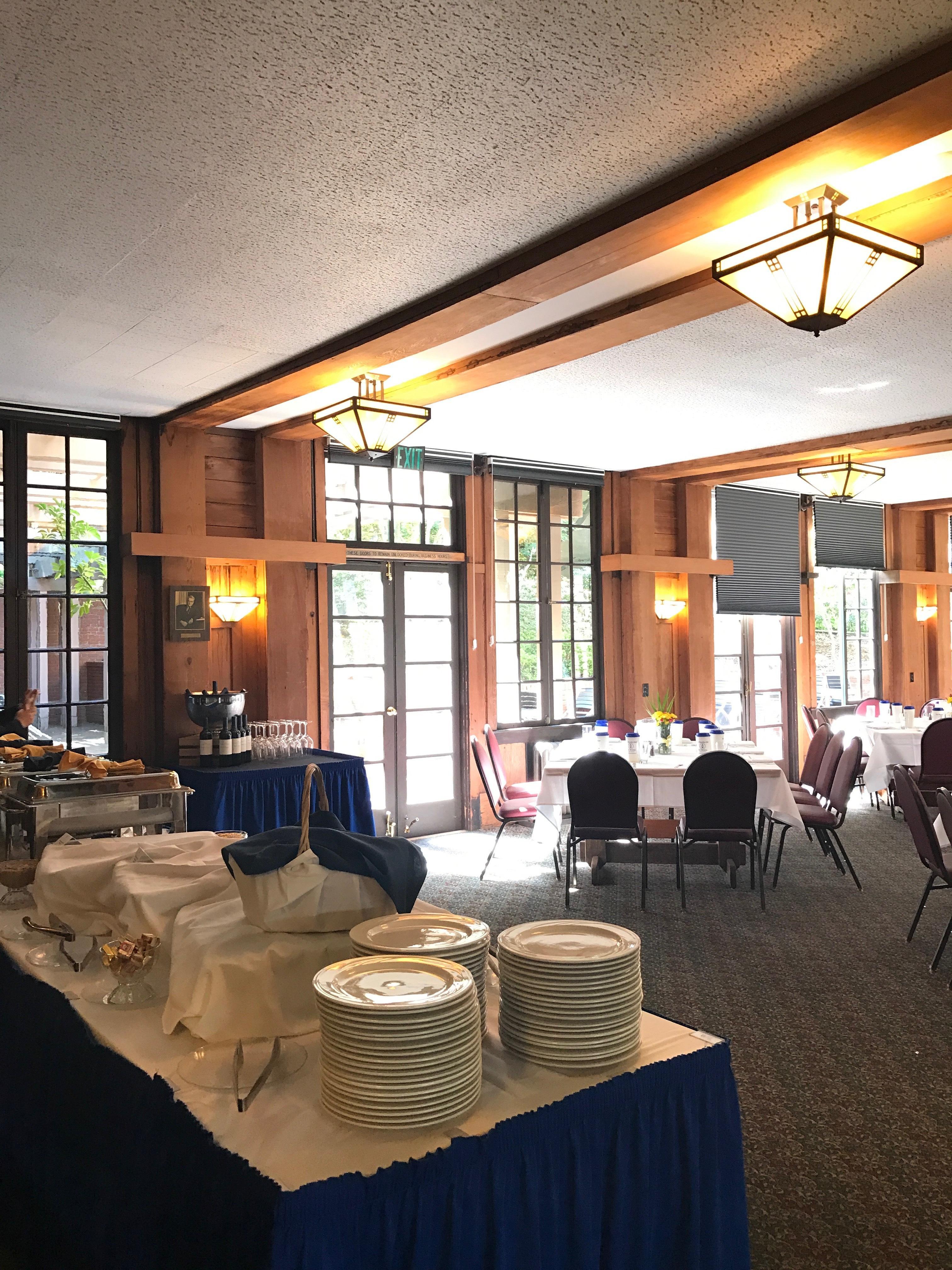 Rooms include Great Hall, Kerr Dining, Kerr Deck, Faculty Glade, Howard Room & Lounge (Ceremony included) 5 Hour Room rental not including 2 Hour Set Up & 1 Hour Breakdown Ceremony Set Up with White Folding Chairs Tables: Rounds of 8 to 10 guests, Rectangular, Squares or a Combination Tasting for up to 4 People Glassware, Flatware, China White Linens and Blue, Gold or White Napkins