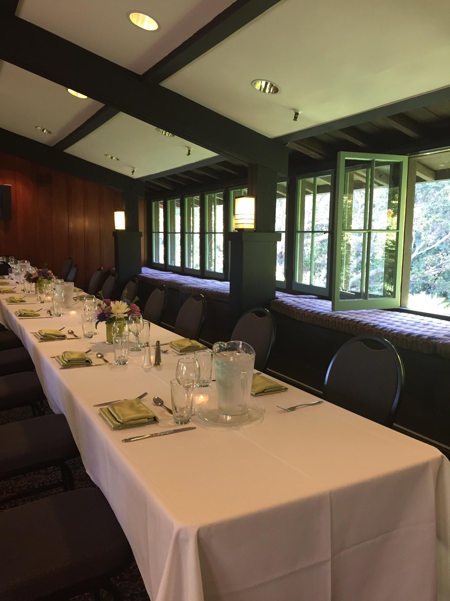 Built in 1902 by the renowned architect Bernard Maybeck in traditional Arts and Crafts style, it's designed to create a cozy, intimate feeling. The crowning glory of the club is the three-story Great Hall. With its vaulted ceiling, massive stone fireplace, and stained-glass windows featuring heraldic crests of the great universities of the world, it's reminiscent of many a European cathedral. Light from the floor-to-ceiling windows warms the redwood paneling and suffuses the Hall in a golden glow. Two charming smaller spaces are also available for functions. The Heyns and Seaborg rooms (named respectively after a chancellor and a distinguished University Nobel Laureate) both have French doors leading to a private outdoor area with a garden view. The Faculty Club has been serving its members and guests for over 100 years and will do everything possible to make your event successful and enjoyable.