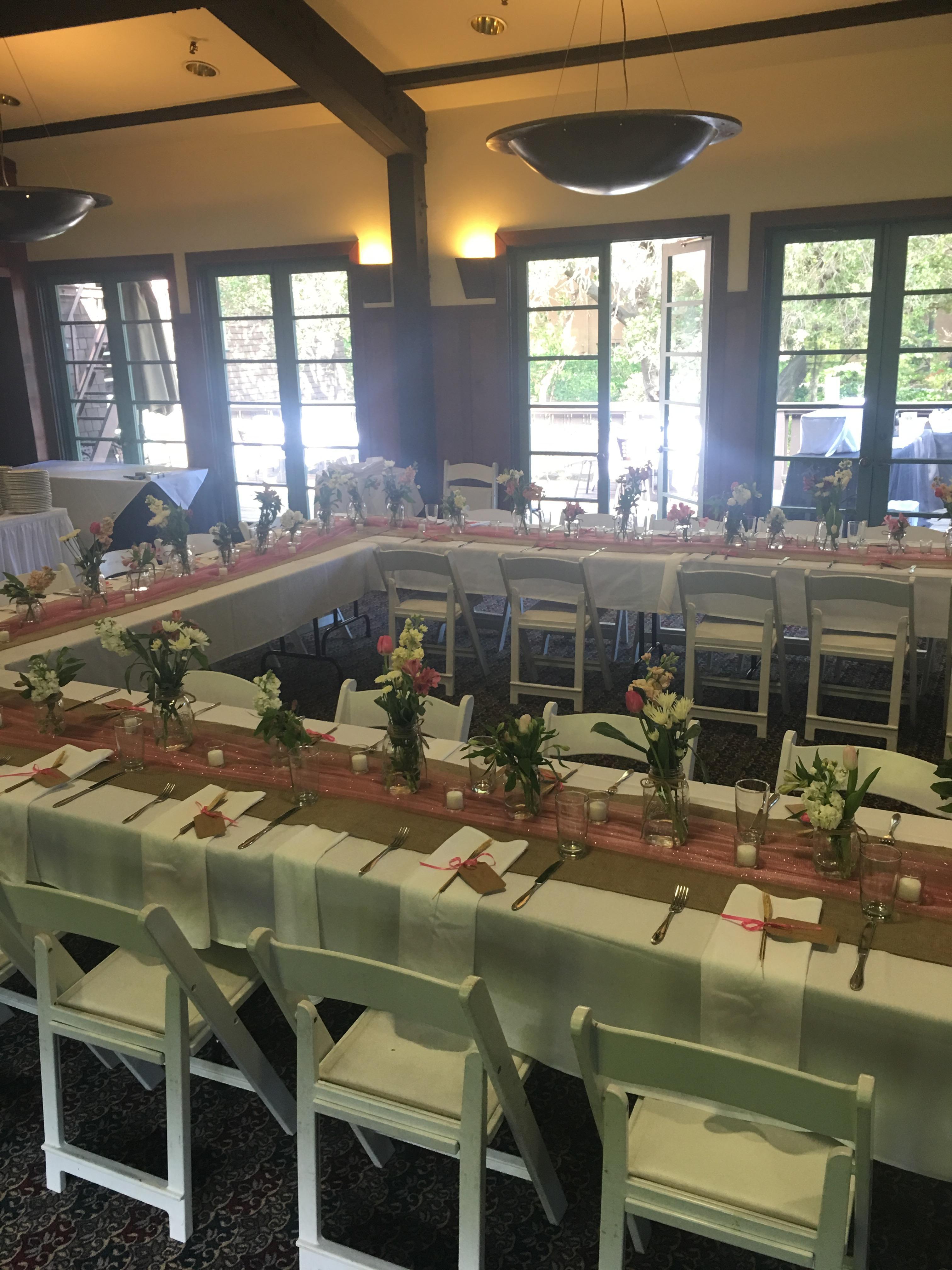 Room include: Seaborg Room & Patio 5 Hour Room rental not including 2 Hour Set Up & 1 Hour Breakdown Tables: Rounds of 8, Rectangular, Squares or a Combination Tasting for up to 2 people Glassware, Flatware, China White Linens & Blue, Gold or White Napkins