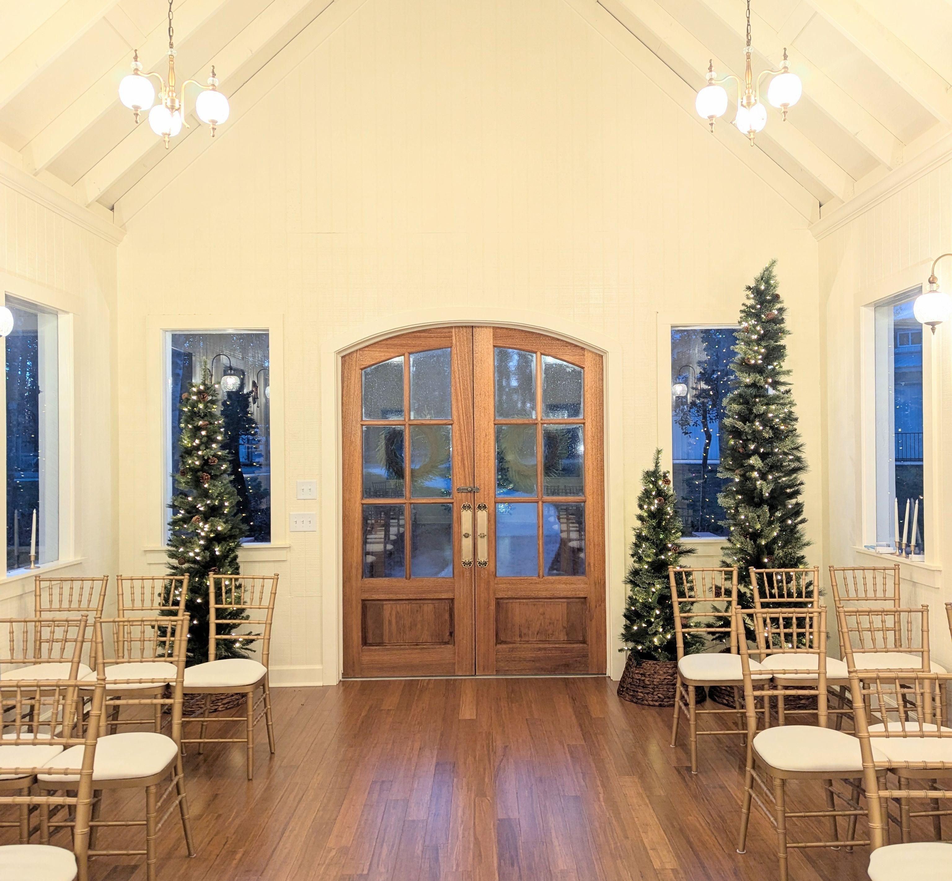Ceremony Director • Friday Night Rehearsal (one hour) • Friday setup 1:00p.m. - 4:00p.m. (Saturday weddings only) • Up to 125 Guest • Tables & Chairs • Setup & Breakdown • Bridal Portrait Time • Handicapped accessible bathrooms • Concrete sidewalks • Parking area with lighting • Bridal Suite • Groom's Room • Golf Cart