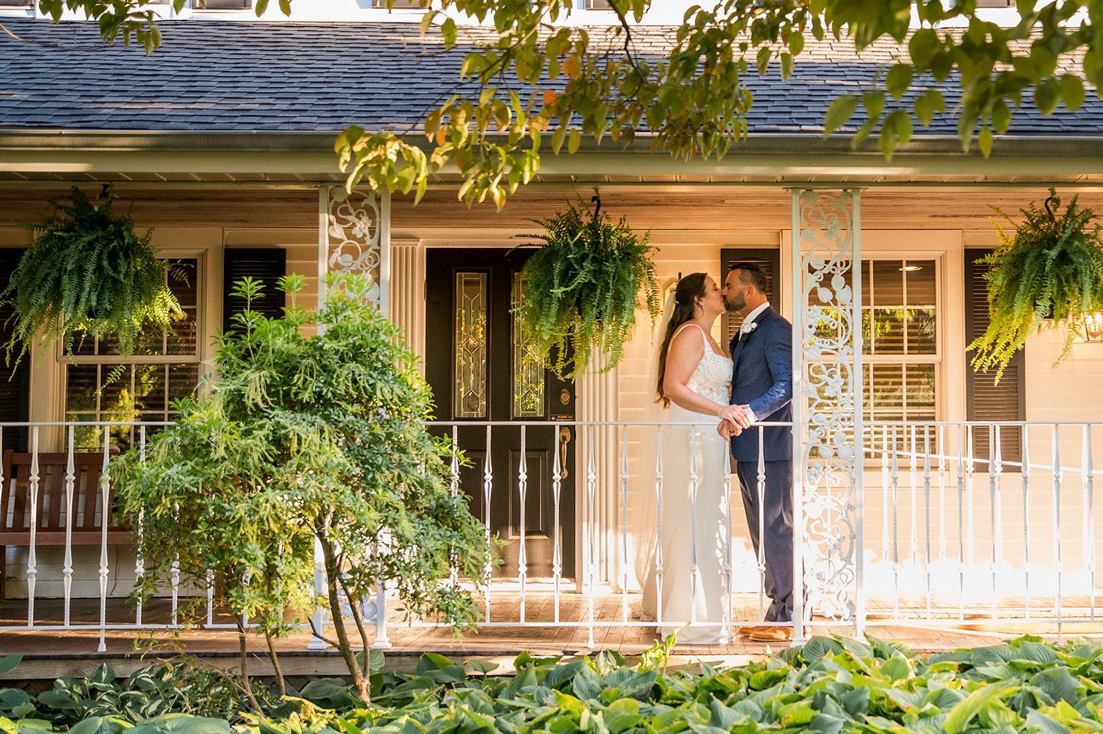 Upon arriving at the Farmhouse, your guests will enter underneath a covered front porch, designed with ornate metal railings and overlooking our beautiful front walkway and gardens.