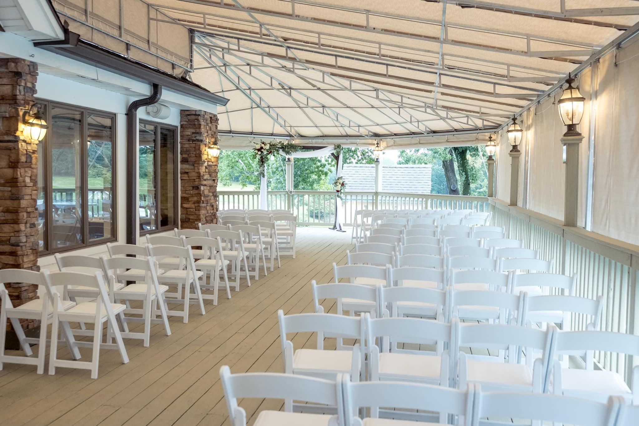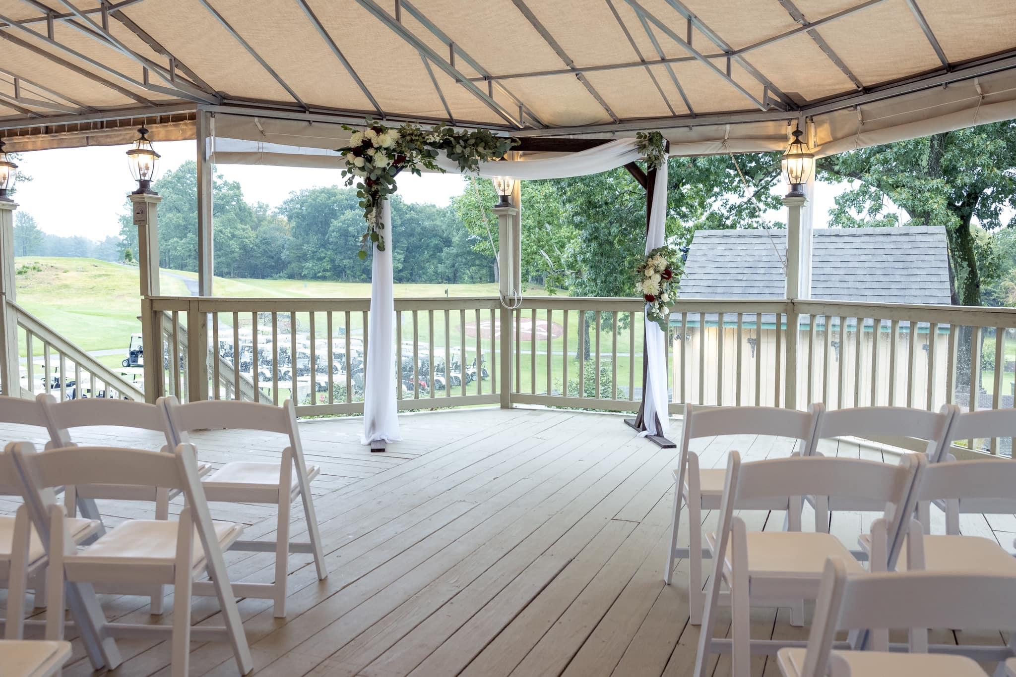 The Farms Country Club has a beautiful spot for outdoor ceremonies; right on the 1st tee box of our pristine golf course. In case of inclement weather, we have you covered - literally! You can have your ceremony on our covered deck while still enjoying the beautiful outdoor views.