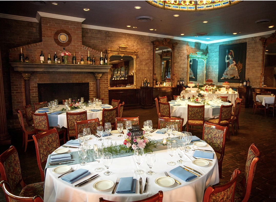 The very popular Courtyard Grill provides a comfortable setting for business gatherings, political events, and receptions of any kind. The massive fireplace, dark wood bar, ornate mirrors, and graceful skylight create the perfect backdrop with accommodations of up to 125 reception guests or 72 seated guests.