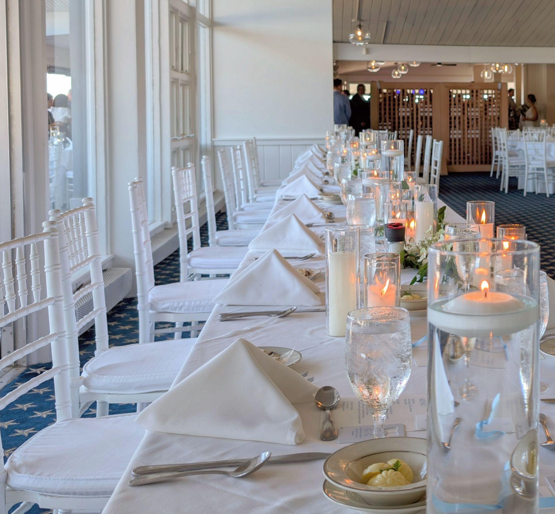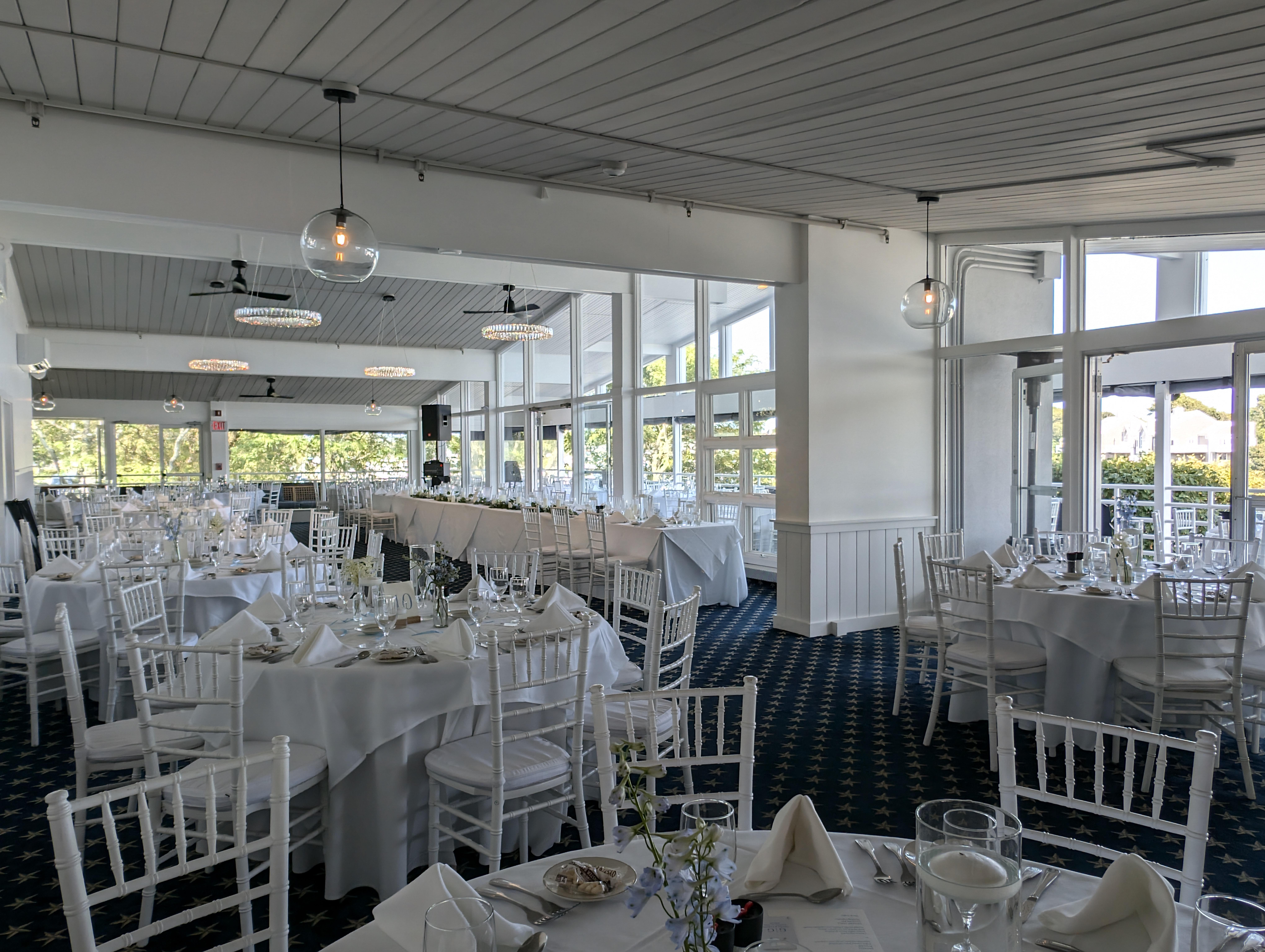 This versatile grand room, with floor-to-ceiling windows, offers breathtaking views of Falmouth Harbor, ensuring that the beauty of the water is always a part of your celebration. Whether rain or shine, the space adapts seamlessly, providing the ideal setting for your rehearsal dinner, ceremony, reception, dinner, and dancing. A dedicated area for the bar ensures that guests can enjoy signature cocktails and fine wines throughout the event.