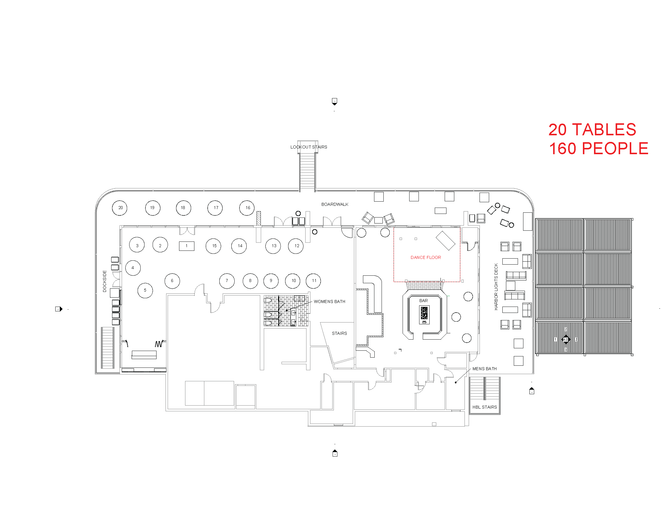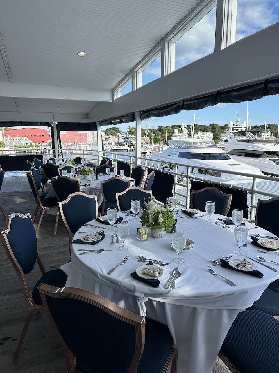 The Harbor Lights Deck is a stunning, versatile outdoor event space designed to accommodate up to 90 guests comfortably. Perfect for hosting rehearsal dinners, ceremonies, receptions, showers, and dinners, this deck offers an intimate and picturesque setting with sweeping views of the harbor. Crafted with weather-safe materials, the deck ensures that your event remains perfect, rain or shine.