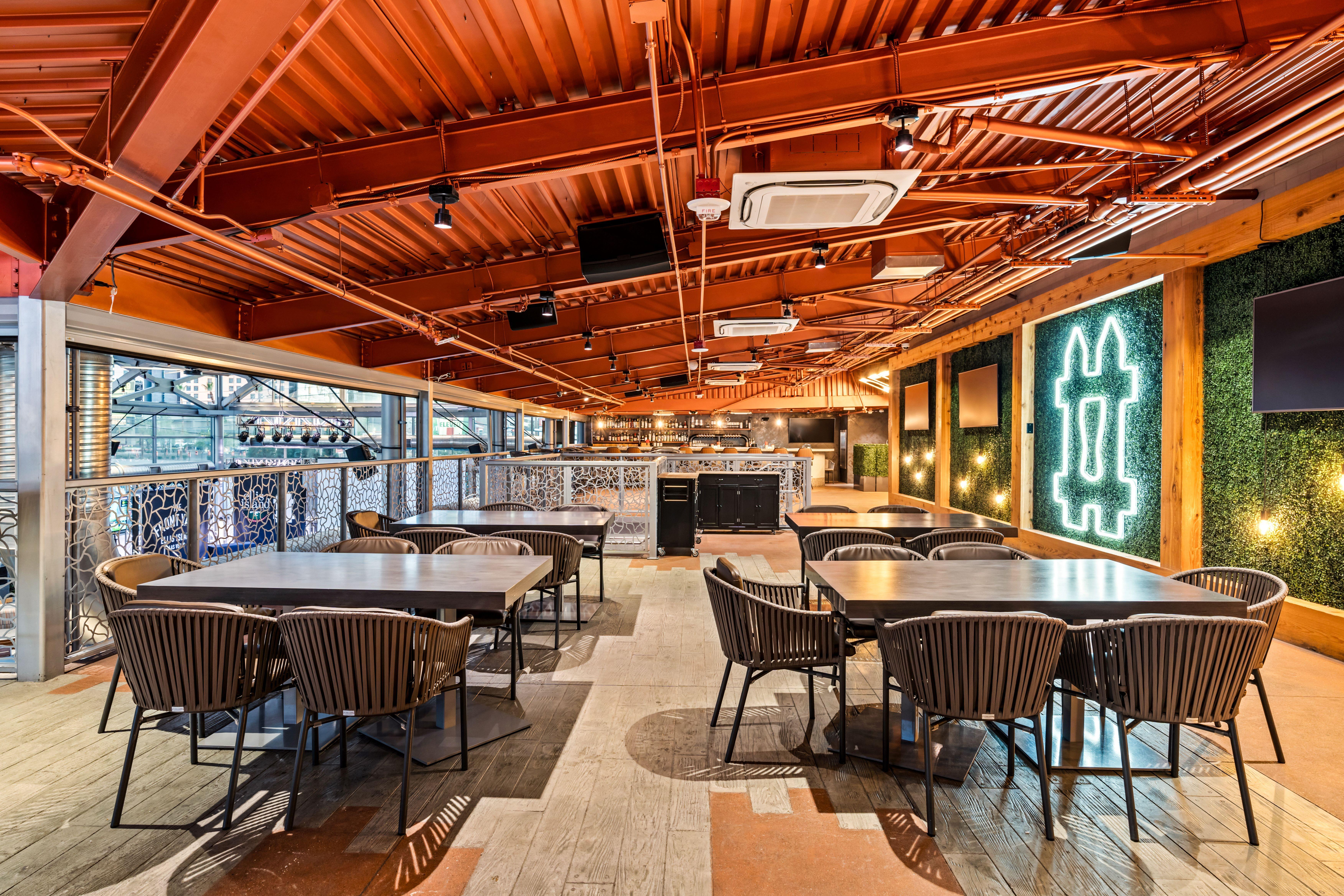 Our stunning second-floor space, accessible only by stairs, offers flexibility to create any event vibe. Featuring a private bar and fulfilling TV and AV needs, it's the perfect setting for your occasion.