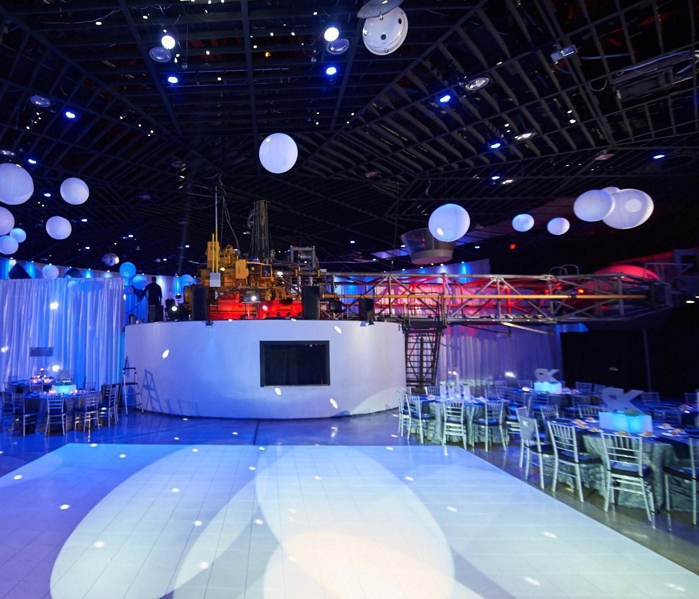 This historic space was once a top-secret military facility. Now guests celebrate under the world's first, largest, and fastest human centrifuge, where all our American astronauts trained to visit the moon. This 11,000 square foot centrifuge chamber features customizable, interactive installed lighting and an onsite production team.