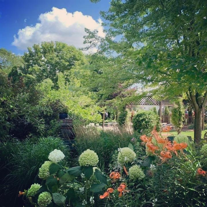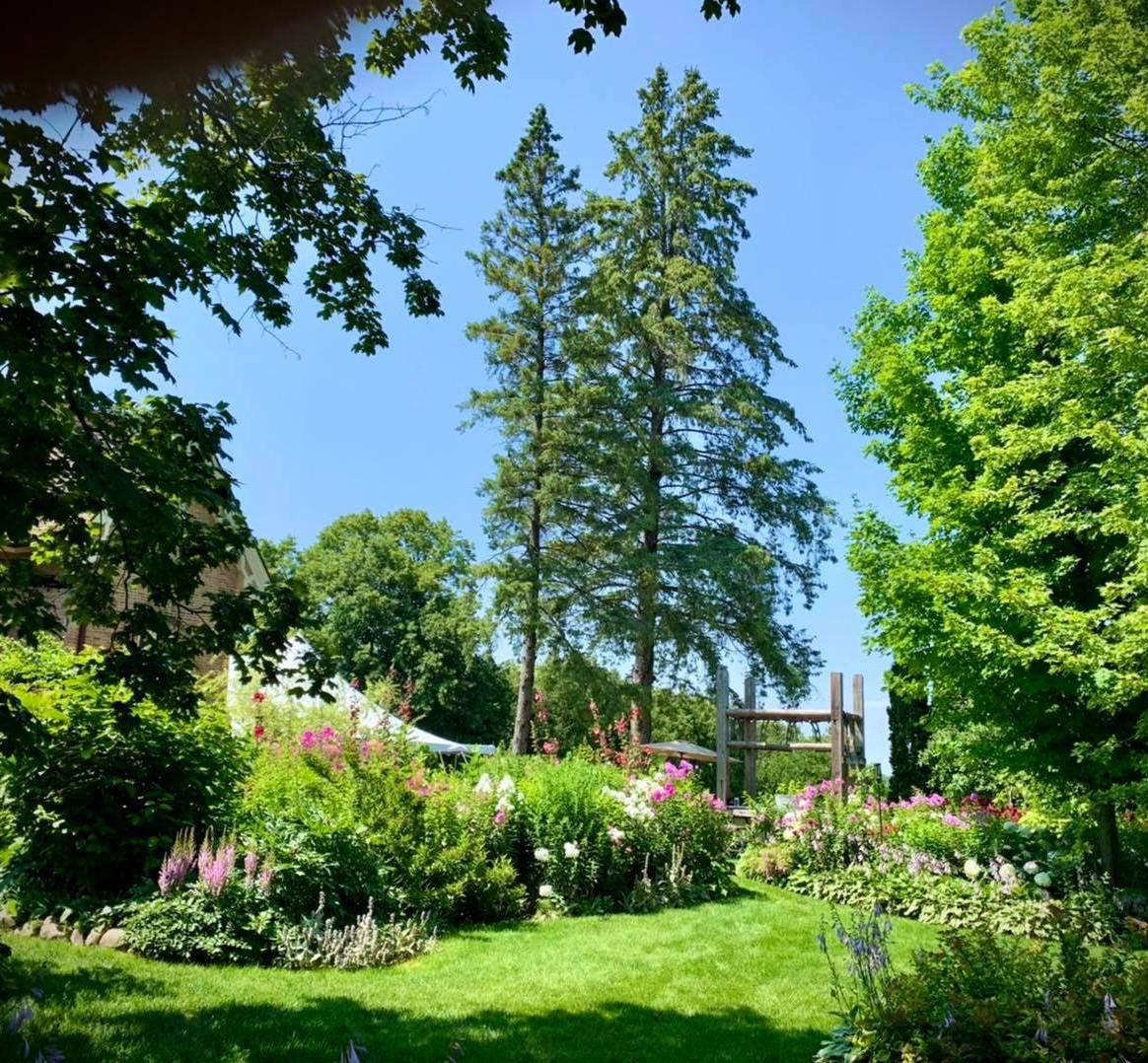 Stunning perennial gardens wrapped in trees and butterflies