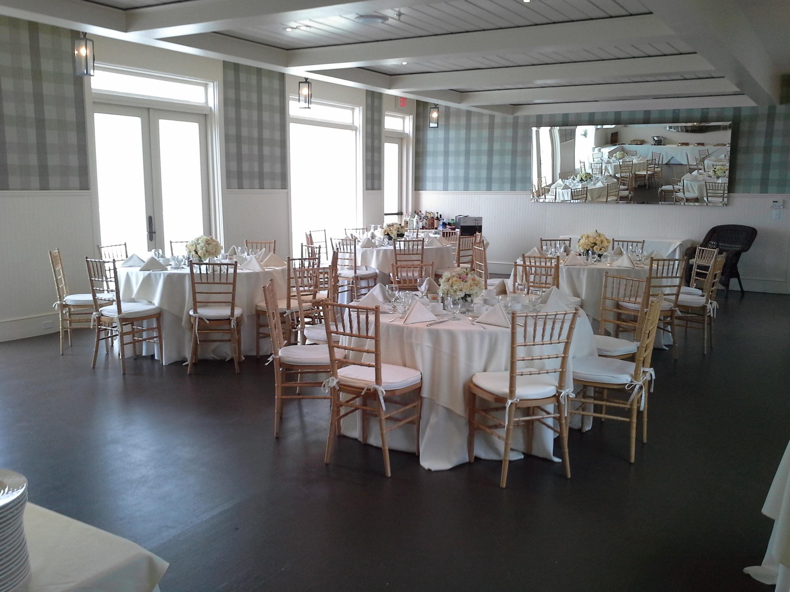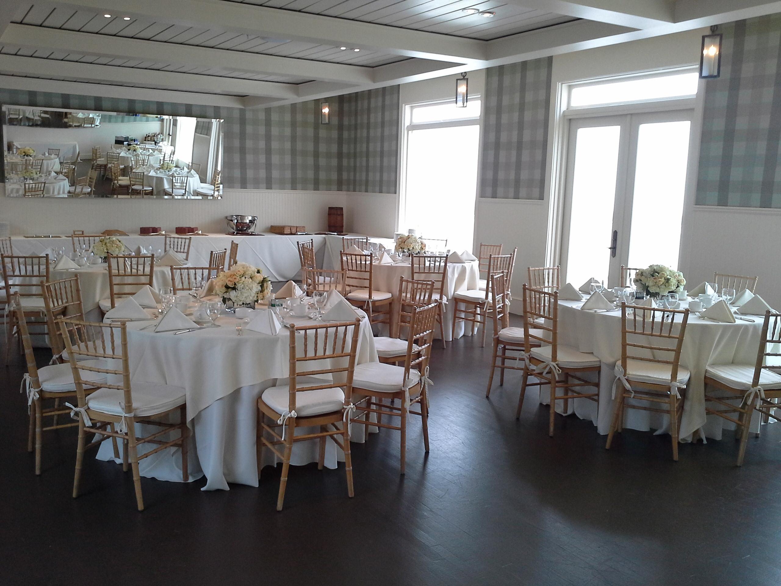 The Windgate Room is an intimate 832-square-foot venue for up to 72 guests, perfect for smaller weddings, showers, rehearsal dinners, or post-wedding brunches. With French doors opening to a garden-edged terrace and a deck overlooking the Hudson Highlands, it offers stunning indoor-outdoor flexibility. Enjoy a seasonal tented patio (May–October), indoor sound system, and private restrooms for a seamless celebration experience.