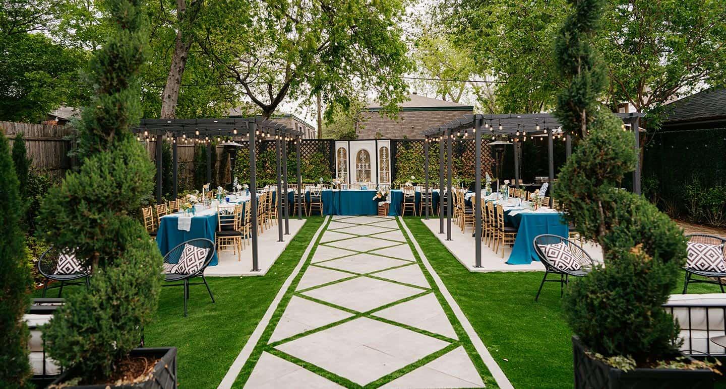 Weddings are hosted in The Gaston Garden, our beautifully manicured outdoor space designed to be flexible for your needs. Our custom aisle and altar is stunningly different to make your day as unique as you. Inside The Gaston house, guests can enjoy hors d’oeuvres in the formal dining room and custom cocktails in the lounge, where every room is a new photo op for capturing memories. Come see why our modern B&B near downtown Dallas is the perfect combination of sophistication and fun for your intimate celebration. Call us to speak with our event coordinator and schedule a tour.