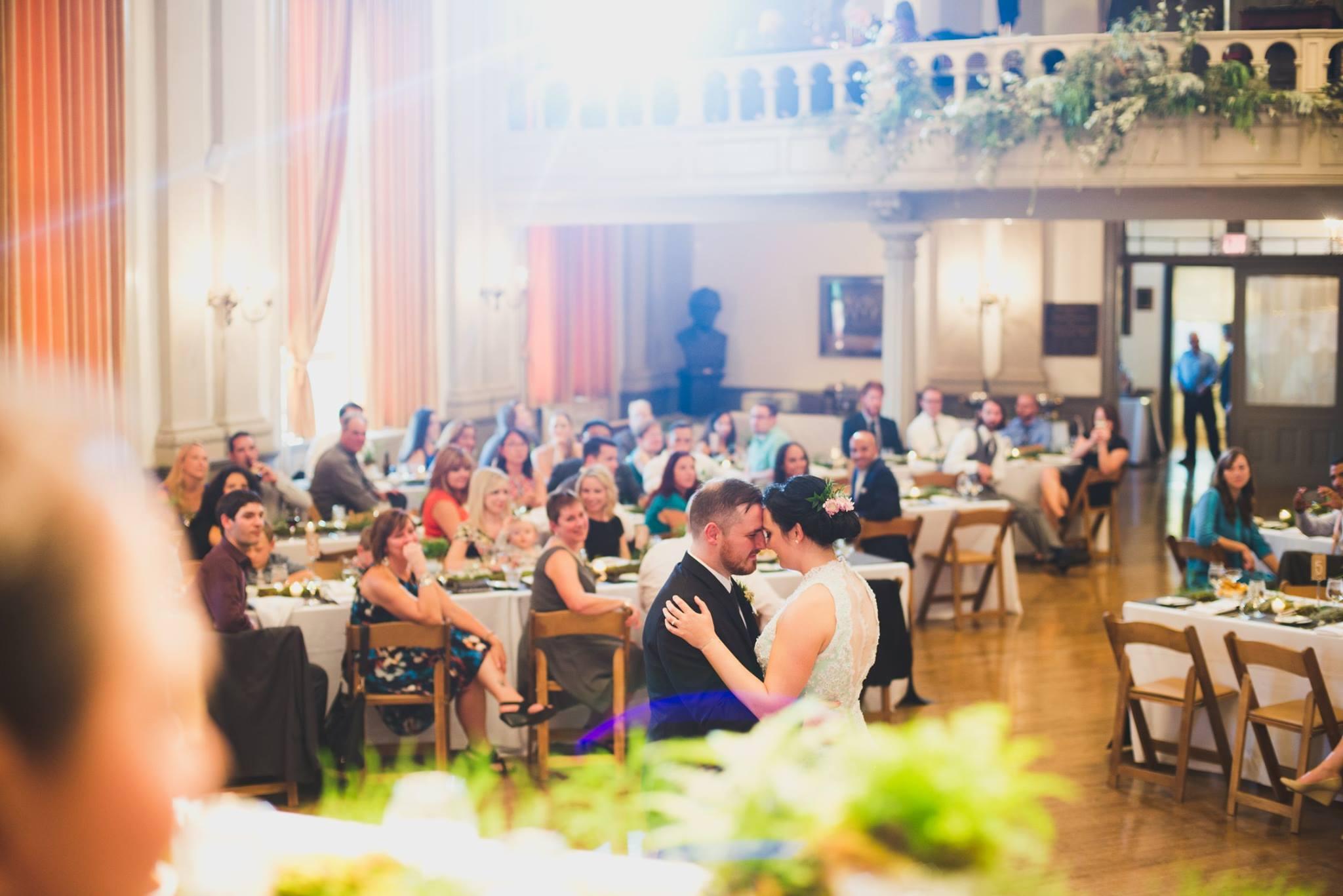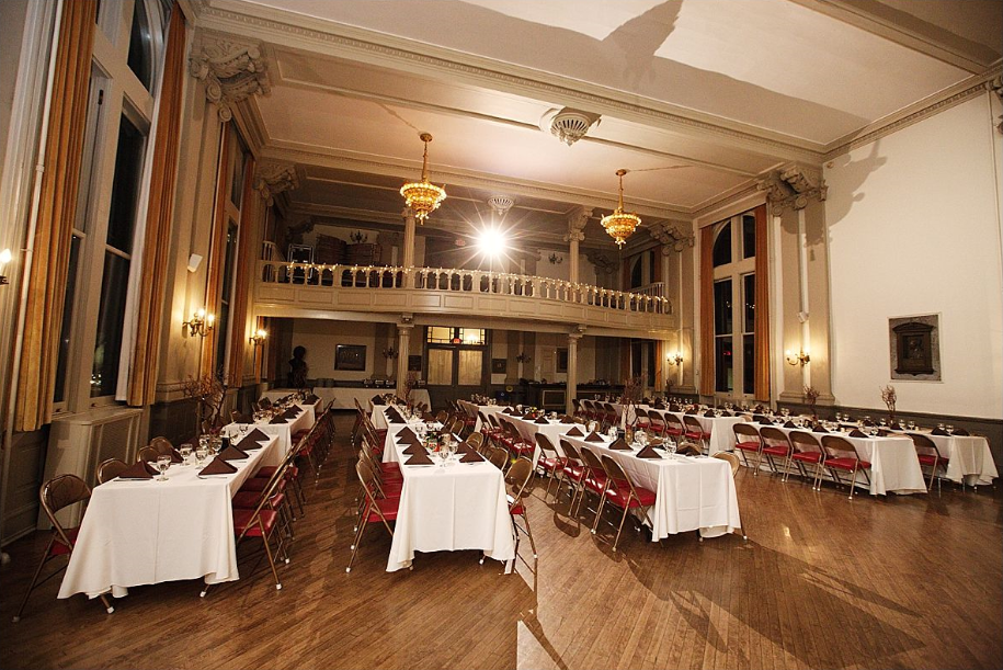 We were so happy we chose the German Society as our venue! We absolutely loved our ceremony in the library space and the incredible atmosphere in that room, along with the great pictures we were able to take after the ceremony. The banquet hall space was perfect for dinner and dancing. We had hardly any decorations because we loved the entire space so much as is. We couldn't have had a better experience -- everything went so smoothly, the coordinator Liesl was so helpful, and we received so many compliments on the venue from our family and friends.