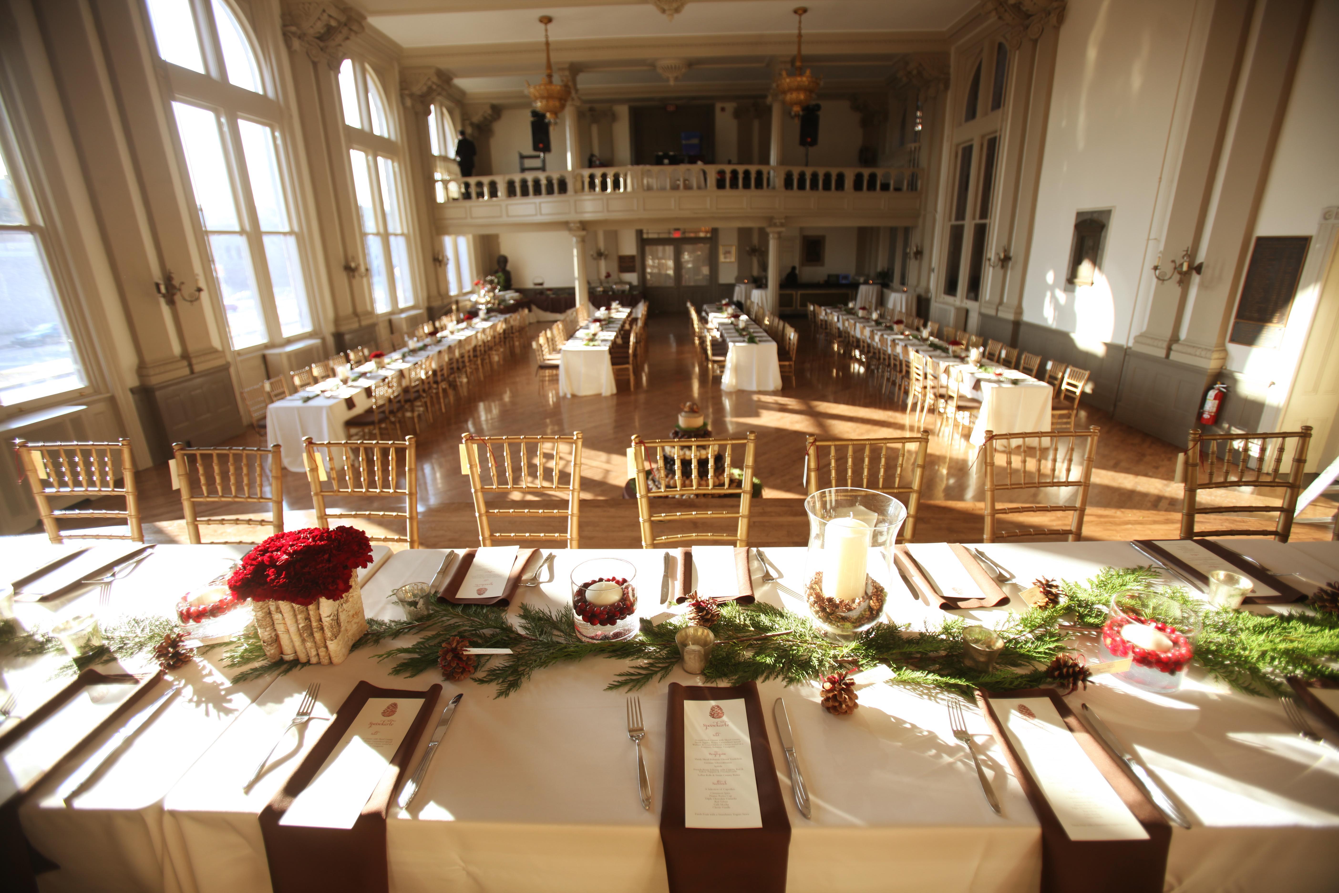 The German Society of Pennsylvania is a historic, three-story brick building with a classic Colonial touch, and is an elegant setting for a Philadelphia wedding. The property offers several venues for every stage of your celebration. The Joseph Horner Memorial Library offers a unique space, with two stories and galleried bookcases. The antique furniture and wood paneling will evoke Belle’s library. The Auditorium, with its distinctly Colonial architecture, is an elegant ceremony venue, but is also perfect for a reception, with plenty of space for dining and dancing. For your cocktail hour, celebrate with your guests in the Ratskeller, a cozy dining room with a tavern atmosphere, or on the spacious and shady Leidy Terrace.