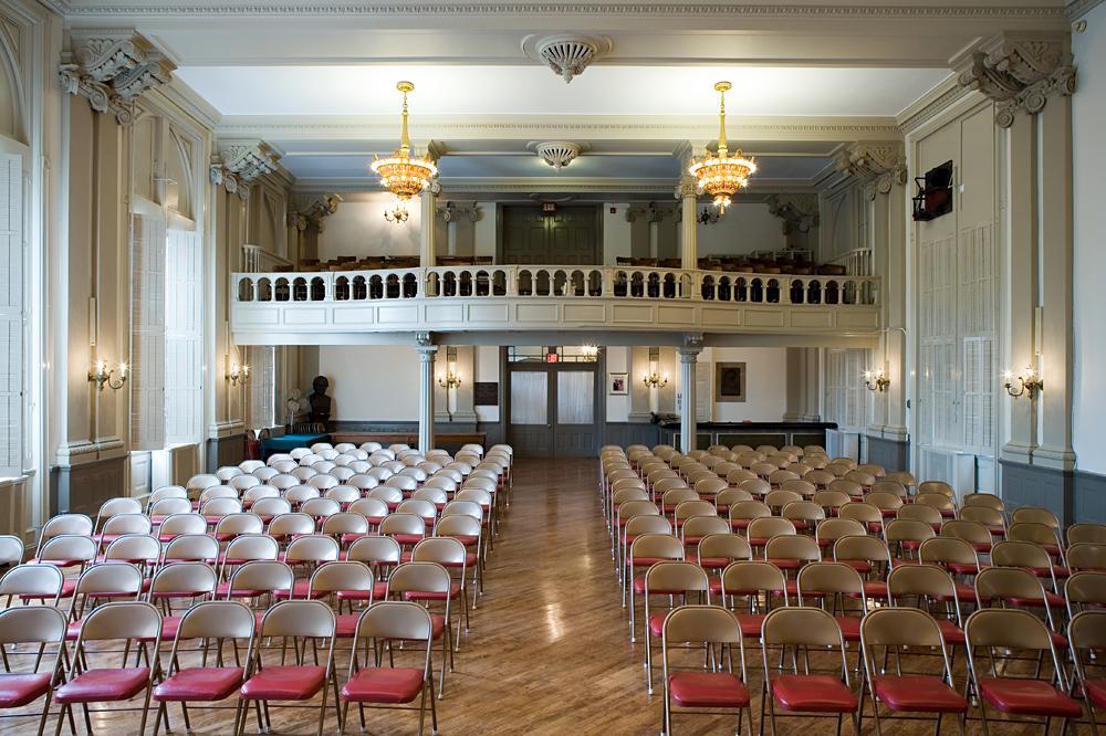 The Auditorium is a perfect setting for large dinners or parties, corporate events, and wedding receptions. The ballroom has a 13' wet bar near the main entrance with refrigeration units. Rental of the room also includes the use of 19 rectangular folding tables, 14 round tables, and 240 folding chairs, as well as a commercial-grade kitchen and a catering prep room.
