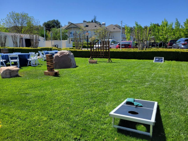Doyle Clifton Park, is a 9,000 sq. ft. manicured lawn framed by trees, rose bushes and lavender, white arbors hugged by wisteria, and surrounded by vineyards and mountain vistas. Say “I do!” under our wisteria-covered pergola surrounded by lush landscaping and estate vines.
