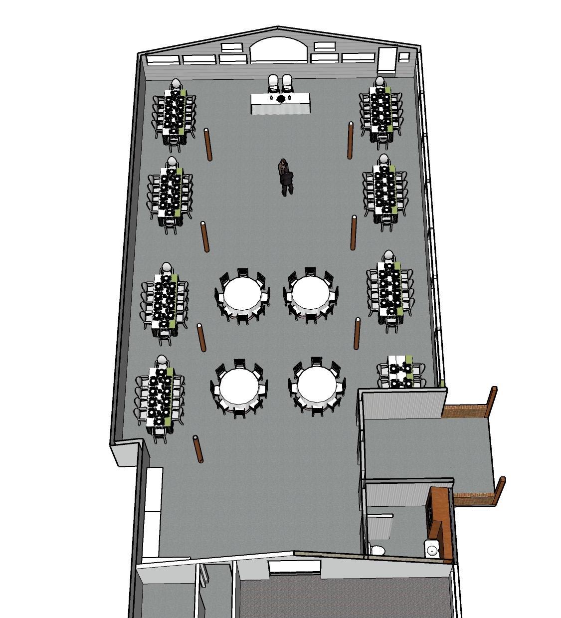 - Tables & Chairs - Fully customizable area to decorate - 2 bathrooms - Catering Preparation Area