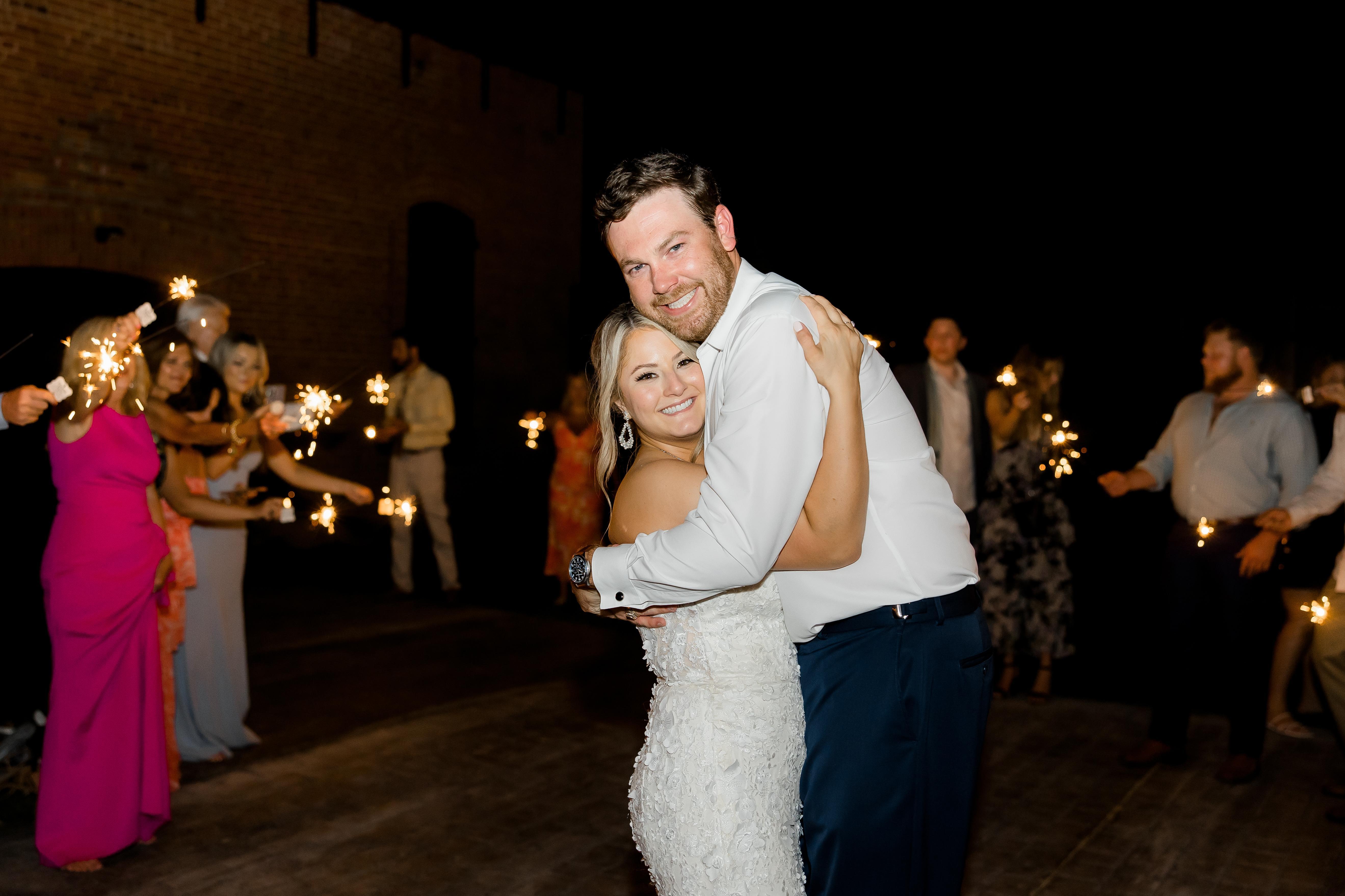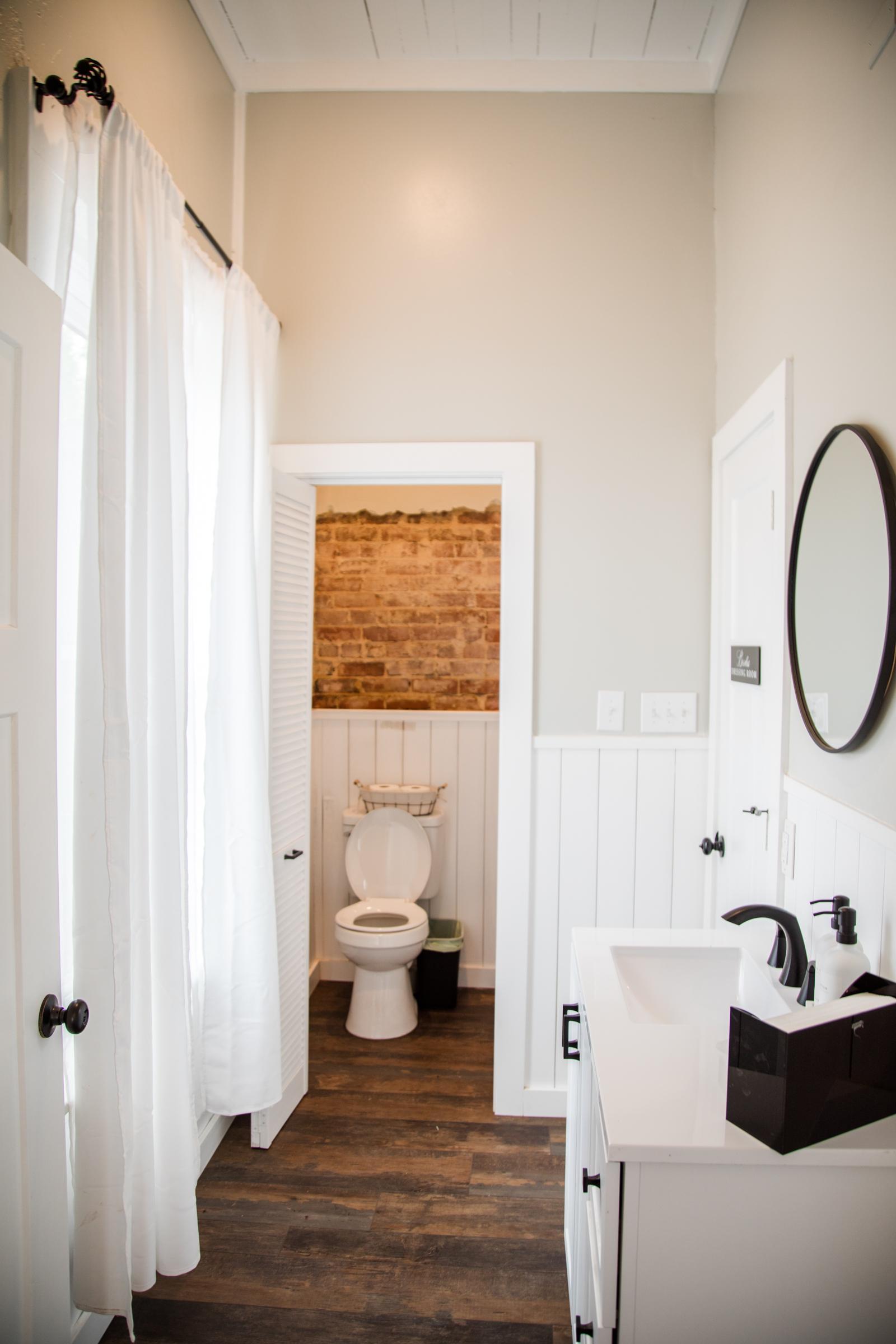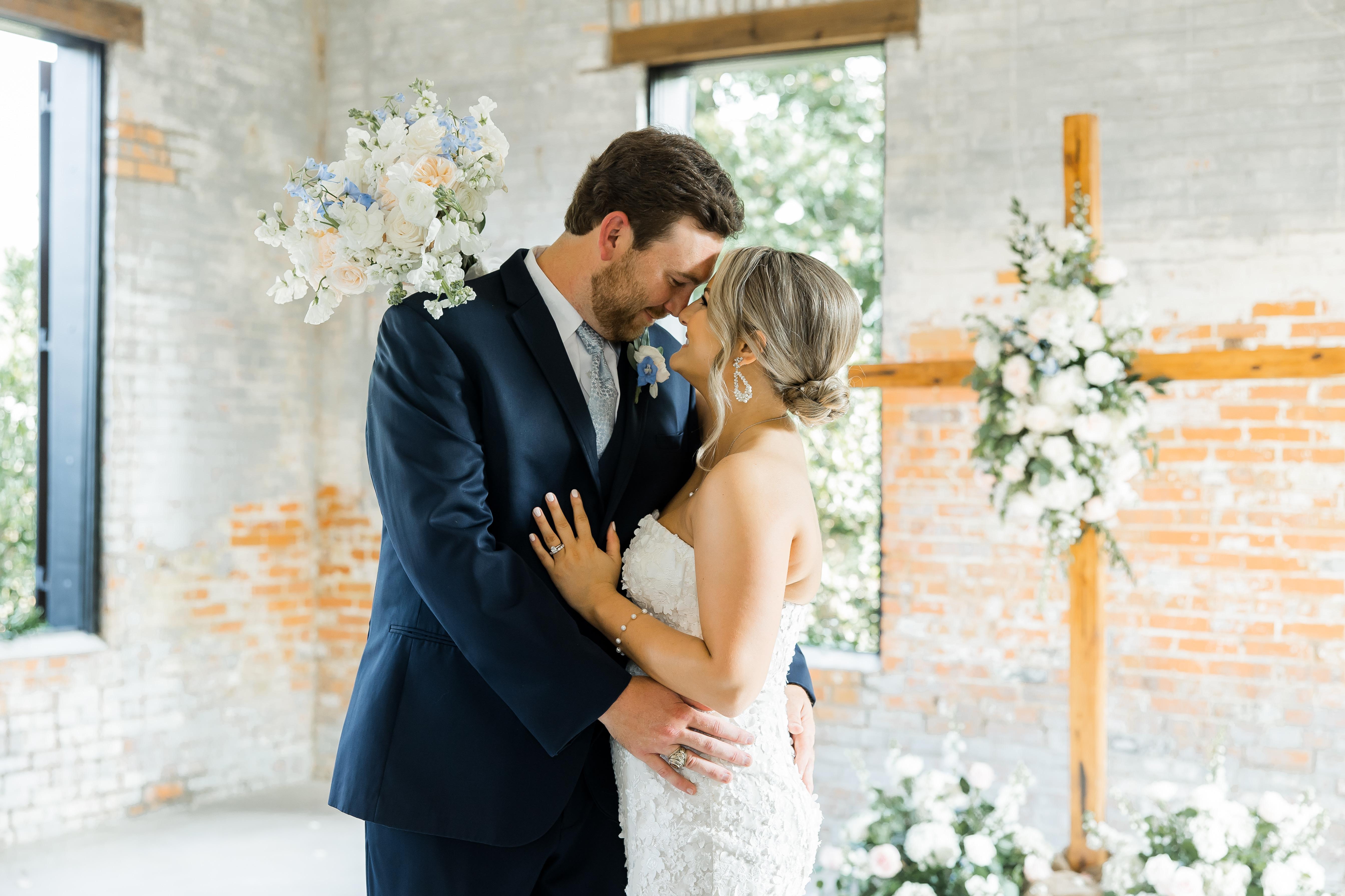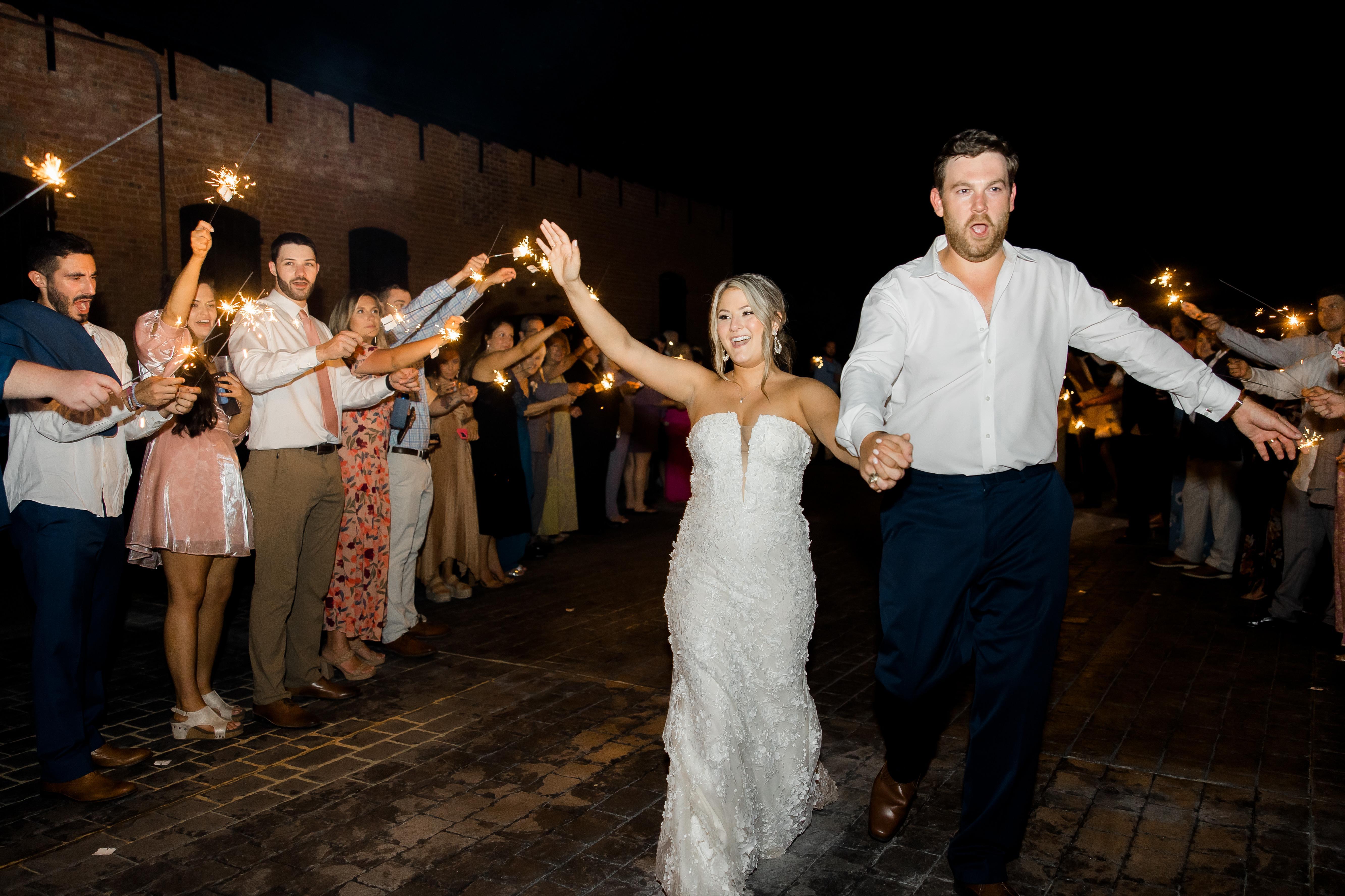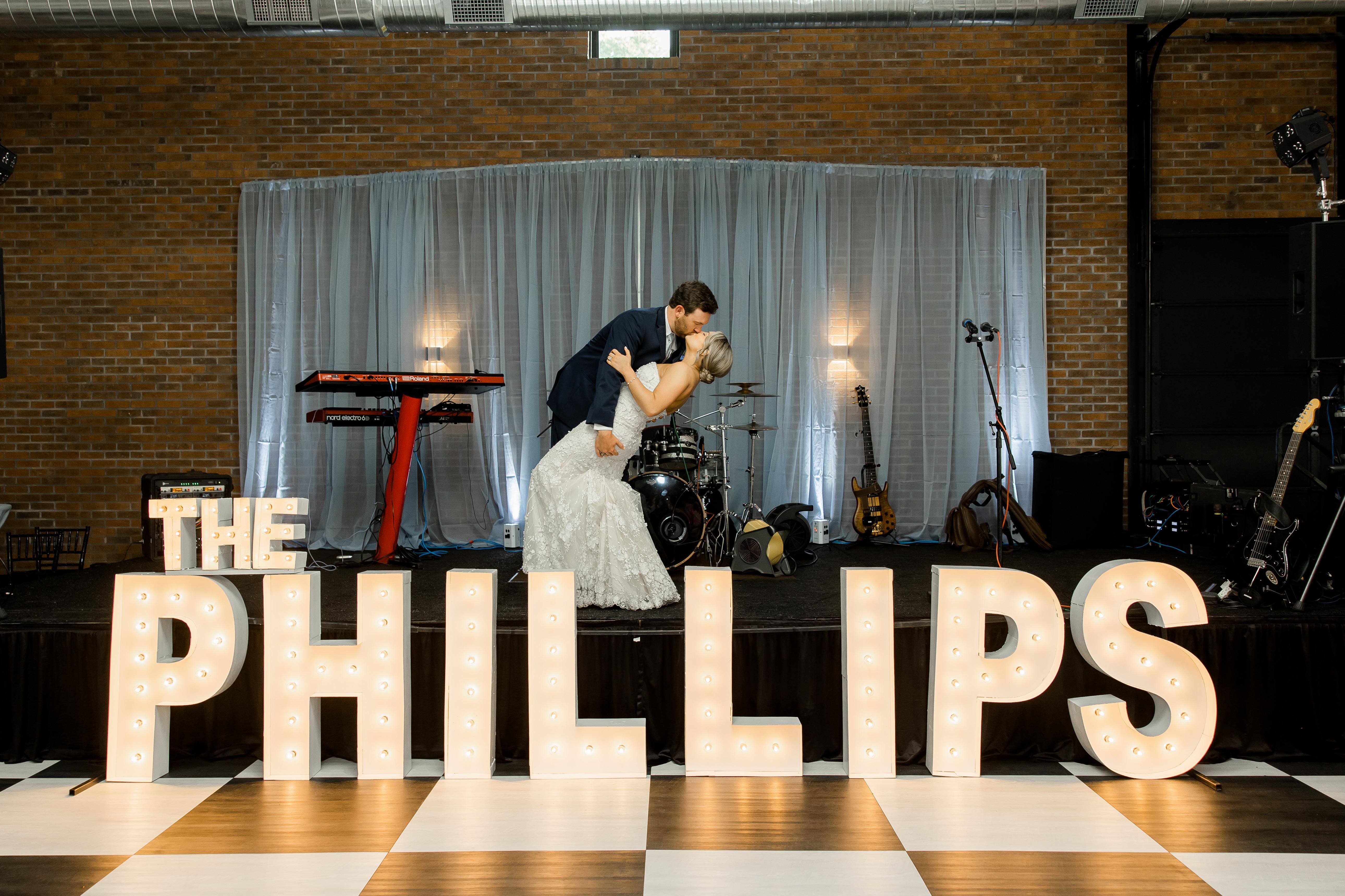 The bride and her bridesmaids will get ready for the big day in the Bridal Suite located in its own separate building. The 800-square-foot space has dazzling chandeliers throughout, yet continues with the industrial brick-and-mortar walls that are a trademark of these historic buildings. This is a large space and a perfect place to spend the day getting ready with your friends and family.