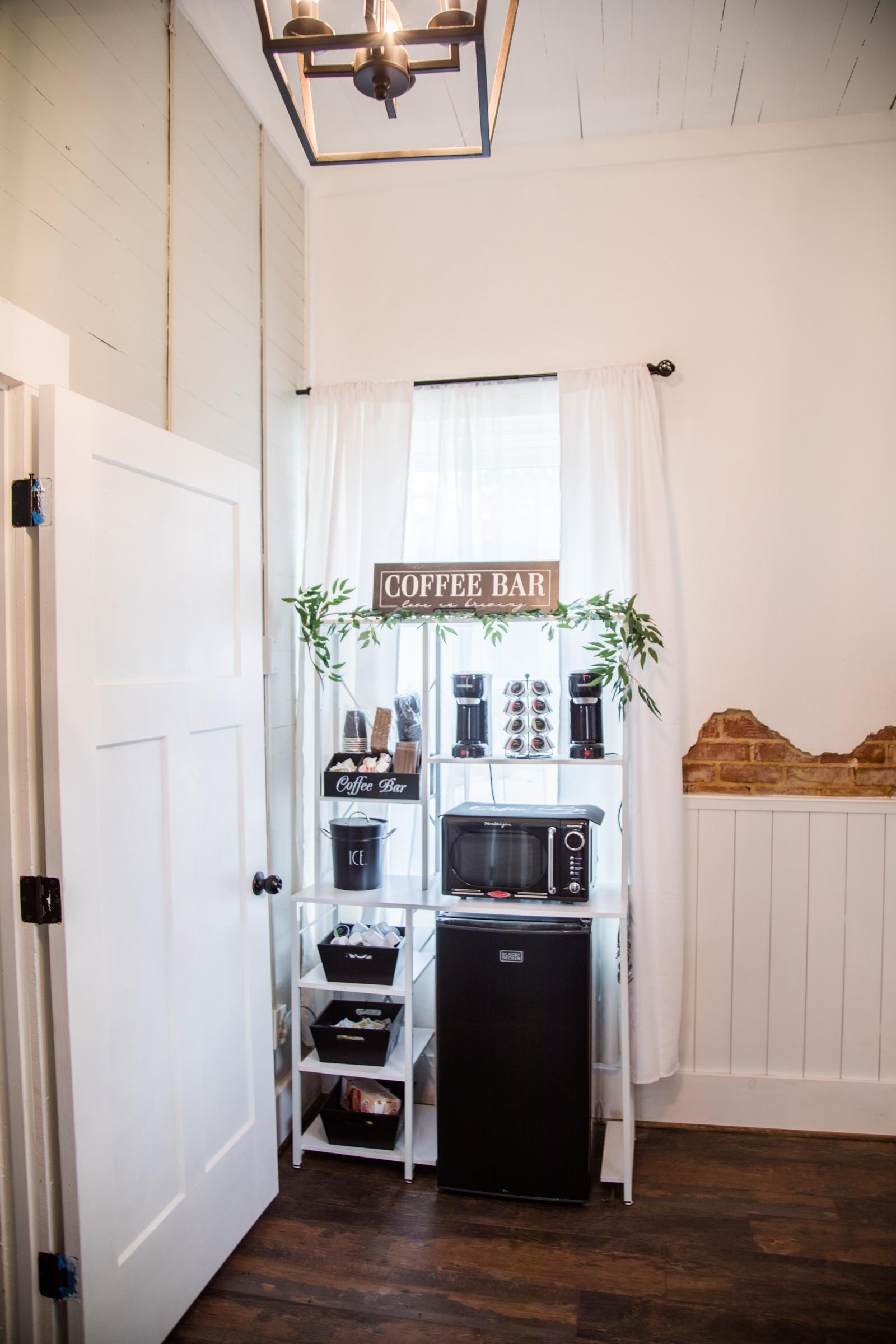 -Plush Velvet Furniture -Two Lighted Vanities for Hair and Make-up -Private dressing area for the Bride and her gown with a large gold framed antique mirror and white/gold furniture -Private restroom with separate vanity -Stocked coffee bar -Refrigerator -Microwave -Ice bucket