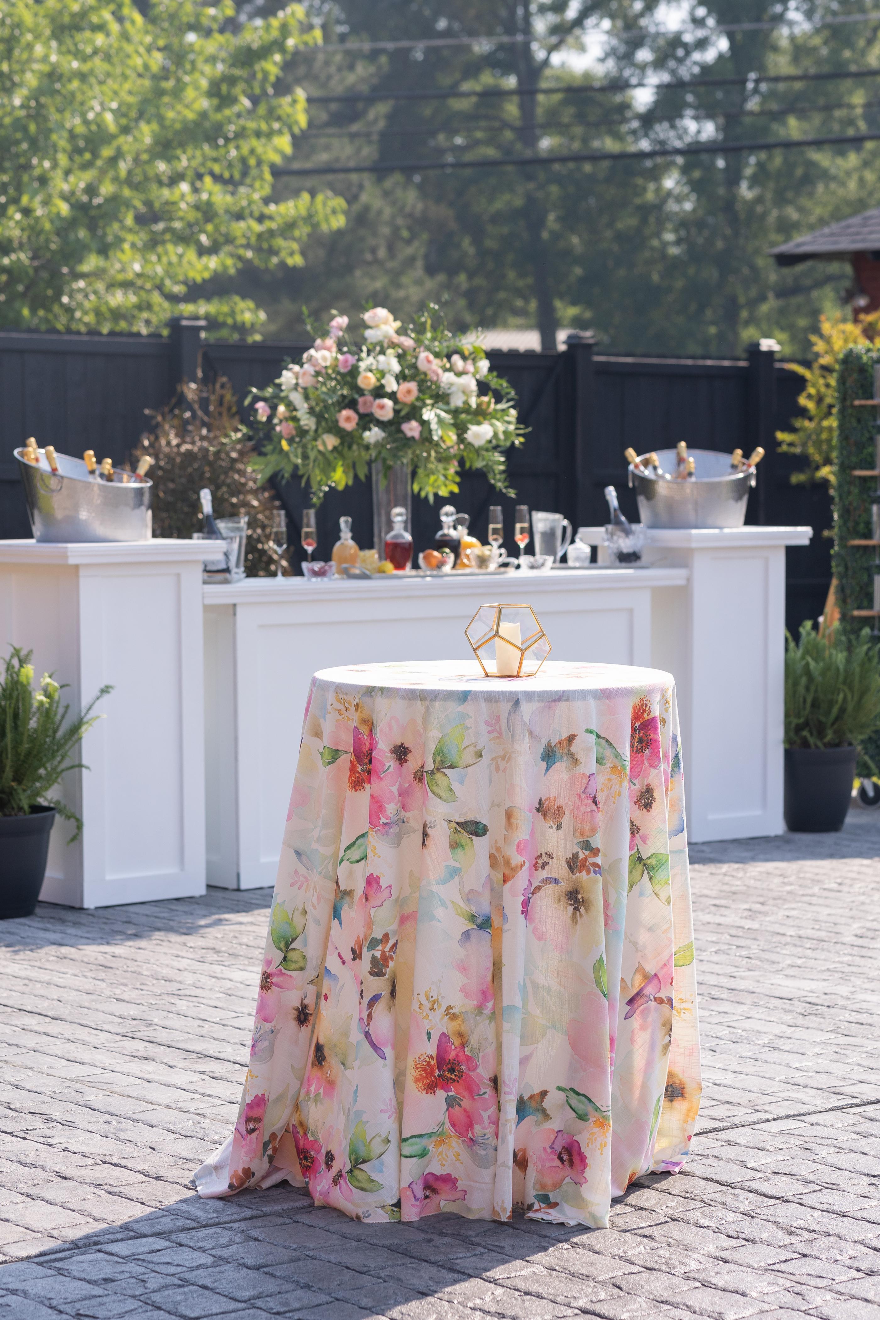 This space is nestled in between the bridal suite and the chapel. It can be used as an outdoor ceremony space, cocktail hour, or a reception space. A tent can be added if desired and our preferred vendors have tents this size available in their inventory as well as additional tables, chairs, and linens. Just imagine adding a bar, cocktail tables, and lounging sofa area on this cobblestone patio with our cafe lights overhead and you have a dreamy area that is the perfect cocktail hour space.