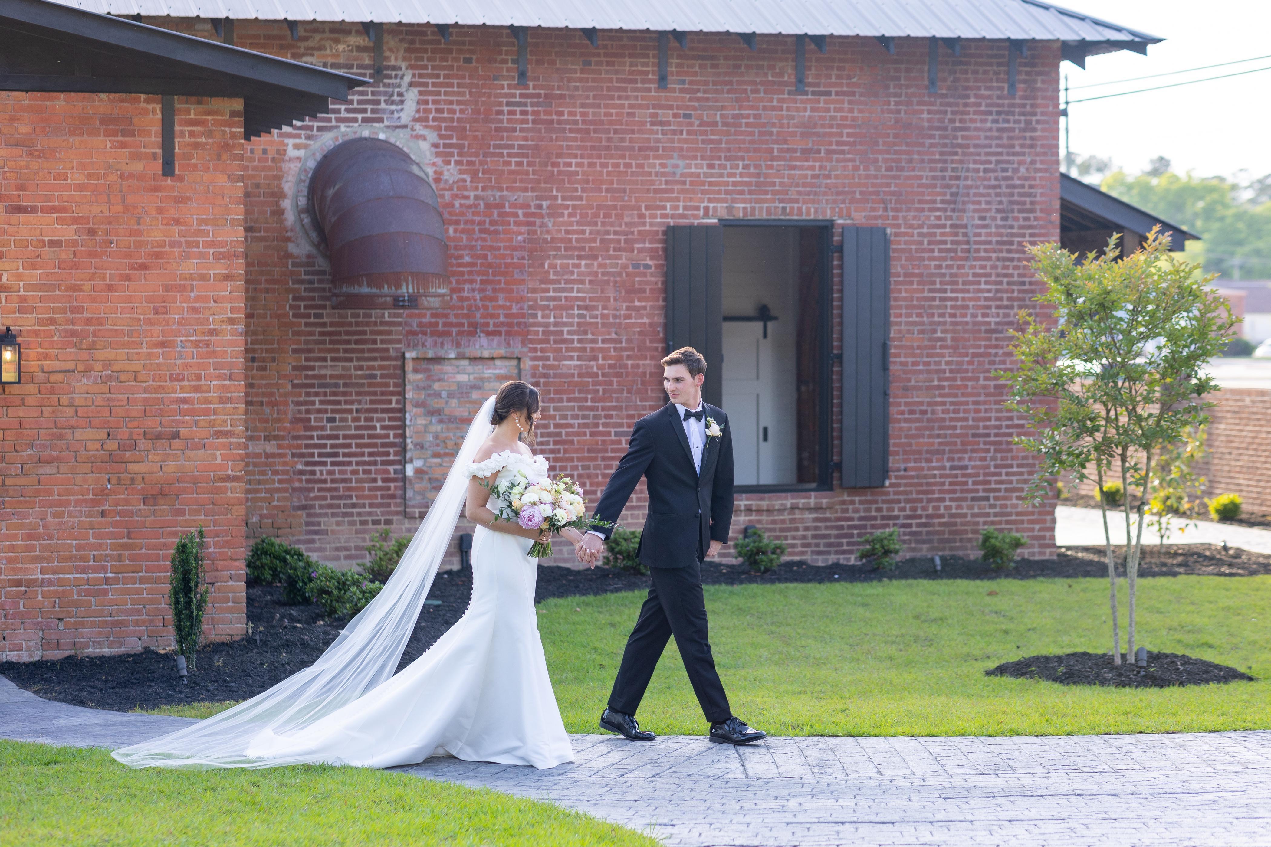 The event space includes a 6,000-square-foot Reception Hall, a 3,000-square-foot Ceremony Space with Grooms Quarters attached, and an 800-square-foot building dedicated as a Bridal Suite. It has two beautifully landscaped garden spaces that can be used for cocktail hour or ceremony spaces. The entire facility has a brick and rod iron privacy fence surrounding the property. The venue includes three historic buildings connected by beautiful cobblestone walkways, lush landscape, landscape lighting as well as cafe lights. The walk from each unique building is just as beautiful as the buildings themselves.