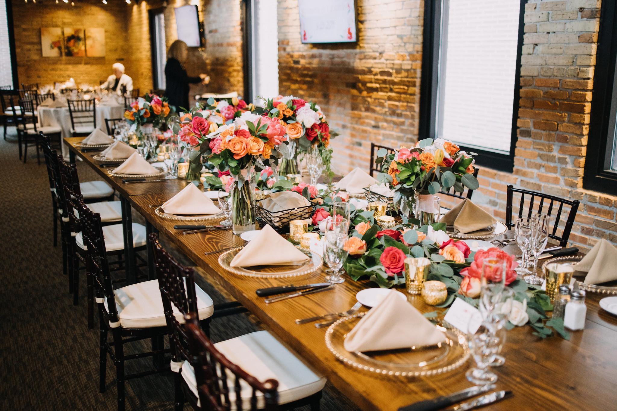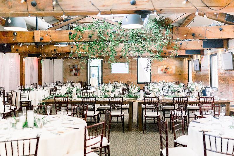 The Grand 1858 at Minneapolis Event Centers is a chic wedding venue located in Minneapolis, MN. A historic brownstone building fitted with state-of-the-art modern amenities, this venue embodies classic elegance. Versatile and able to be transformed to suit any event design, The Grand is a spectacular location for couples to celebrate their union with loved ones. Located in the buzzing Saint Anthony Main District, The Grand was built in 1858. The space feels luxe and timeless, featuring stunning views of downtown Minneapolis, an open floor plan, and a glass atrium that leads to a beautiful garden patio. Couples can choose to host their ceremony at indoor or outdoor event sites before moving into the main reception area. Featuring the original brick walls, tall pillars, exposed beams, and expansive windows, the space lends itself perfectly for a night of dinner and dancing. This venue can accommodate up to 350 guests.