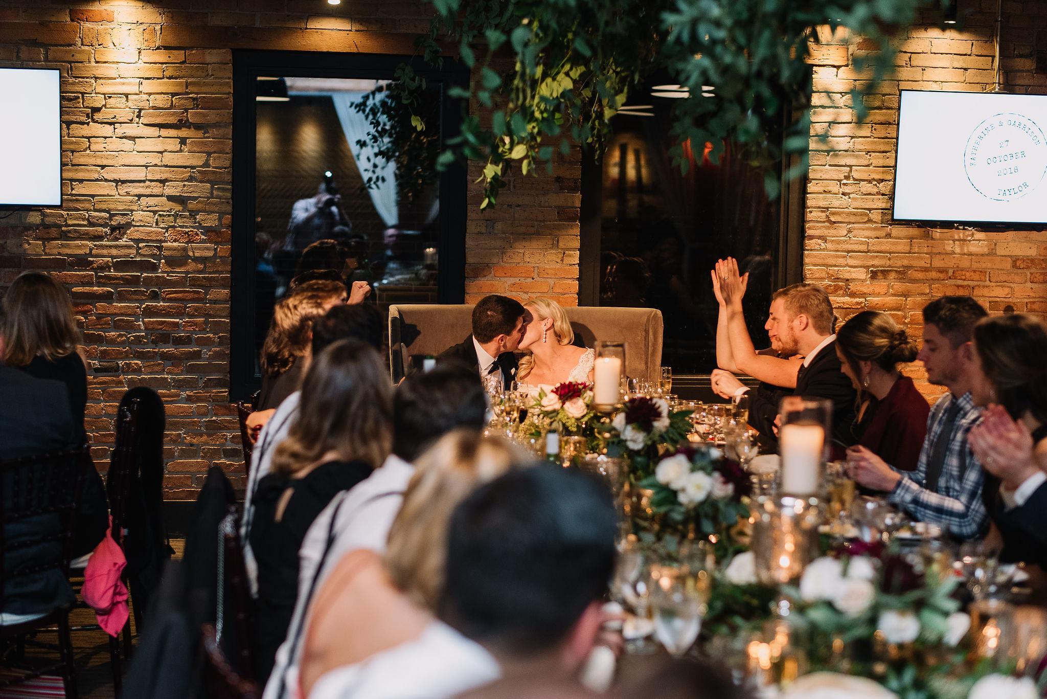 The room features an open floor plan and an all glass atrium that leads guests to a lush garden patio. This stunning space can be easily transformed to fit your event’s vision. The Grand 1858 offers your day a unique programmatic stage of three spaces for your wedding day. You can begin with an outdoor urban garden ceremony, move into the glass enclosed foyer and host your reception and dance in the main space.
