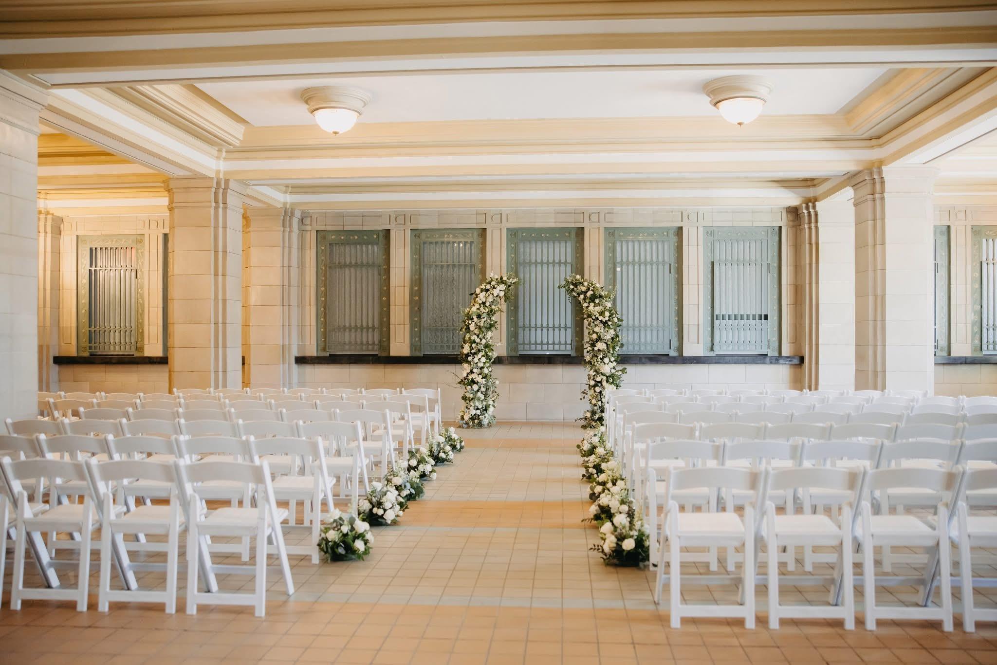 Step into a world of romance and lavishness in the Grand Ballroom at Joliet Union Station. Set within a beautifully restored historic train station, this stunning venue blends old-world grandeur with modern sophistication offering a truly unique setting for your special day. Once the bustling hub for travelers, the Grand Ballroom now provides a beautiful, versatile space for a variety of events, including intimate ceremonies, grand receptions and social gatherings. With a capacity of 200, the Grand Ballroom comfortably accommodates large groups, and can host up to 300 guests for a cocktail-style event. The space is complemented by exquisite architectural details, including soaring ceilings, grand windows, and elegant finishes that create an unforgettable atmosphere. From intimate ceremonies to grand receptions, our venue offers a one-of-kind experience.