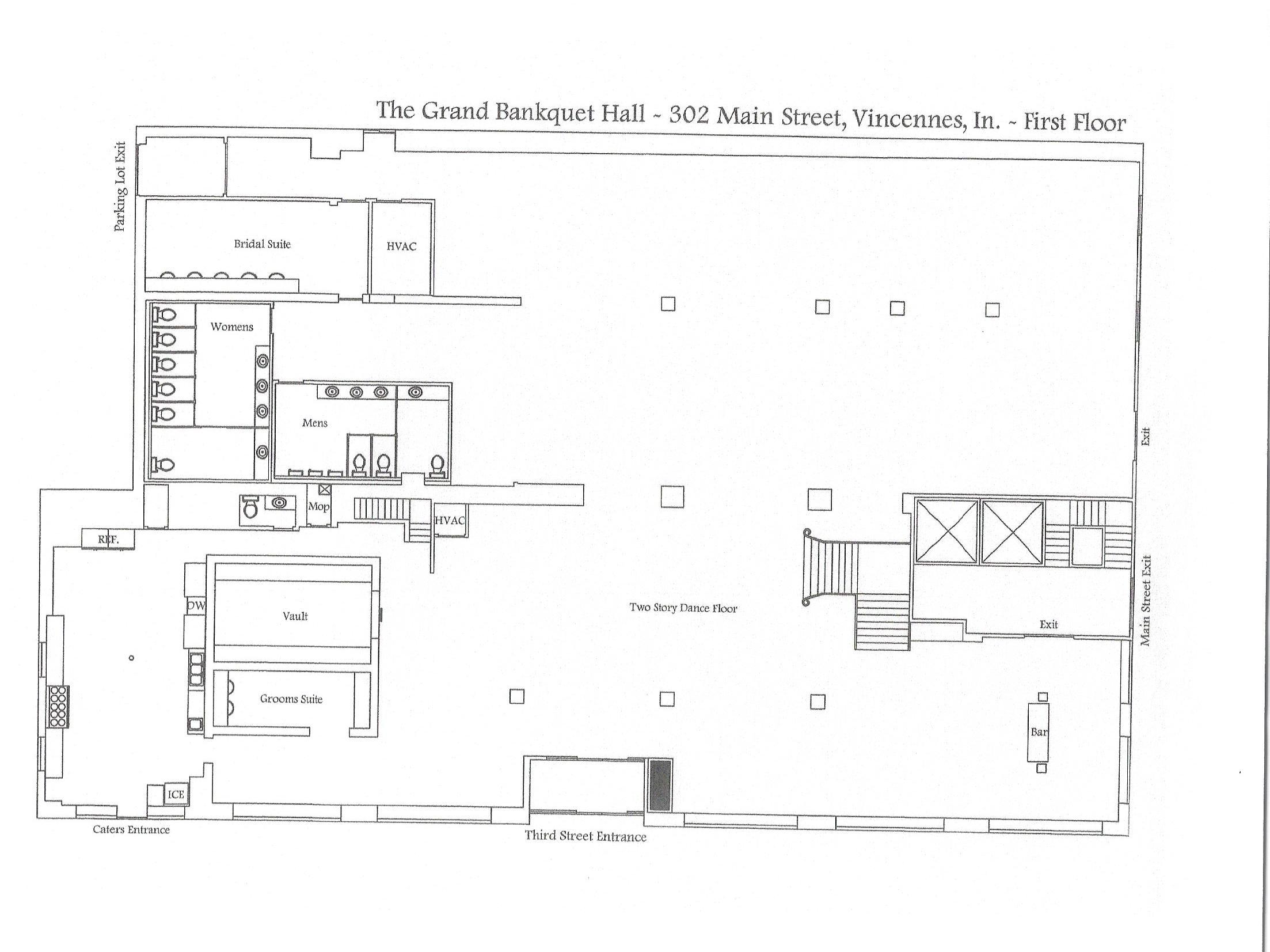First of all, congratulations!!! We are so glad you are interested in our event center! We are now open in the American National Bank Building, 302 Main Street. The 12,000 square foot area will easily seat 400 guests {300 on main level + 100 upstairs}; however, it is easy to make the space seem more quaint for smaller parties. We have a private parking lot in the back and the corner lot allows for ample street parking. Our elegant + industrial look is complete with a grand staircase, a "U" shaped balcony that overlooks the dance floor, a bank vault converted to a ready room, and an additional large suite/ready room with plenty of mirrors and plug-ins! The strategically placed lighting {most of which are on dimmers} will create the most perfect ambiance and decorating can be minimal!