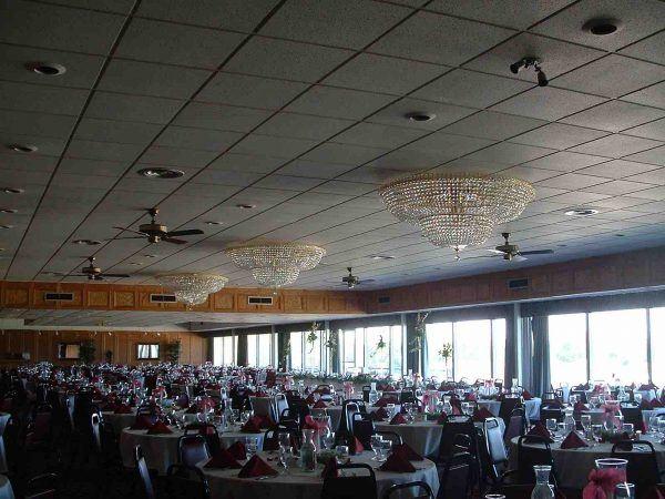The Grand Ballroom has a seating capacity of up to 550 guests with a minimum of 275 guests. The ballroom features 132 feet of windows, large elegant chandeliers, two spacious dance floors, gorgeous views of the gazebo, garden, waterfalls, and the Bay County Golf Course. Whether you are looking to book the ballroom for your wedding ceremony, reception, or another type of event, our team is trained and experienced in event hosting, and we guarantee excellent service!