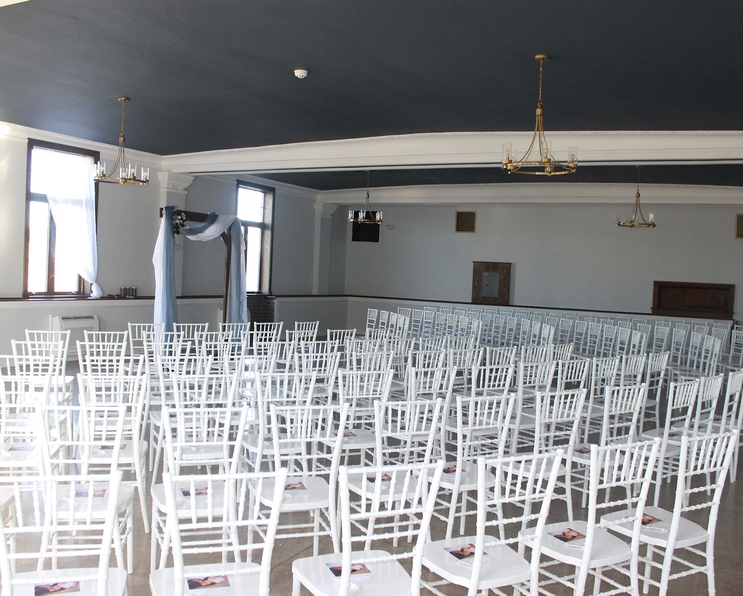 Built in 1928, as an Elks Temple, this property has been beautifully restored and renovated, while keeping its original character and charm. Climate-controlled for all-season events, on-site tables and Chiavari chairs are included for up to 200. Enjoy the flexibility of using cater of choice, and the freedom to bring in your own beverages and spirits.