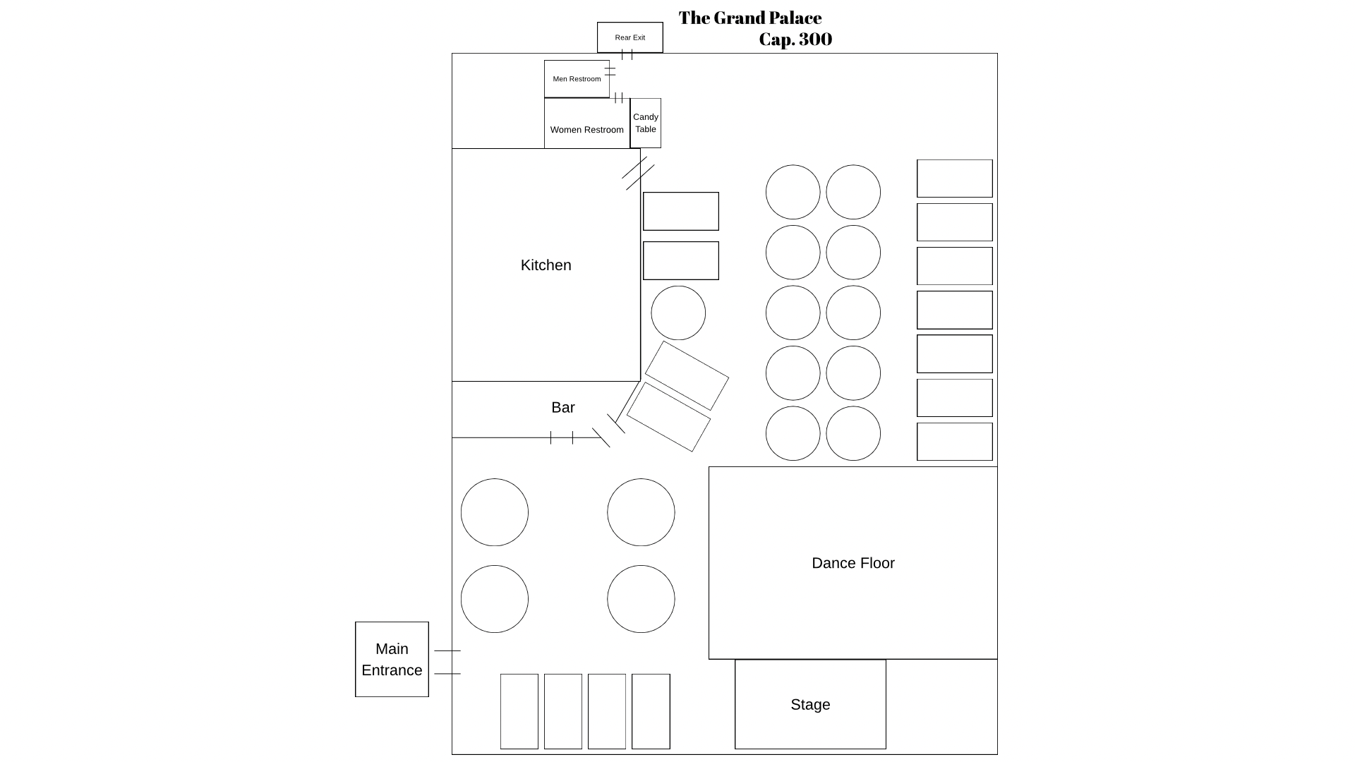 *Customizable dimmer lighting to set the perfect ambiance * A raised **main stage ideal for ceremonies, live entertainment. *Main table seating designed to highlight the guest(s) of honor * A *12' x 7' projector screen** available as part of our upgraded package - perfect for videos, photo montages, or live feeds *LED lighting throughout the Main Ballroom and around the dance floor adding vibrant color and atmosphere to match your theme.