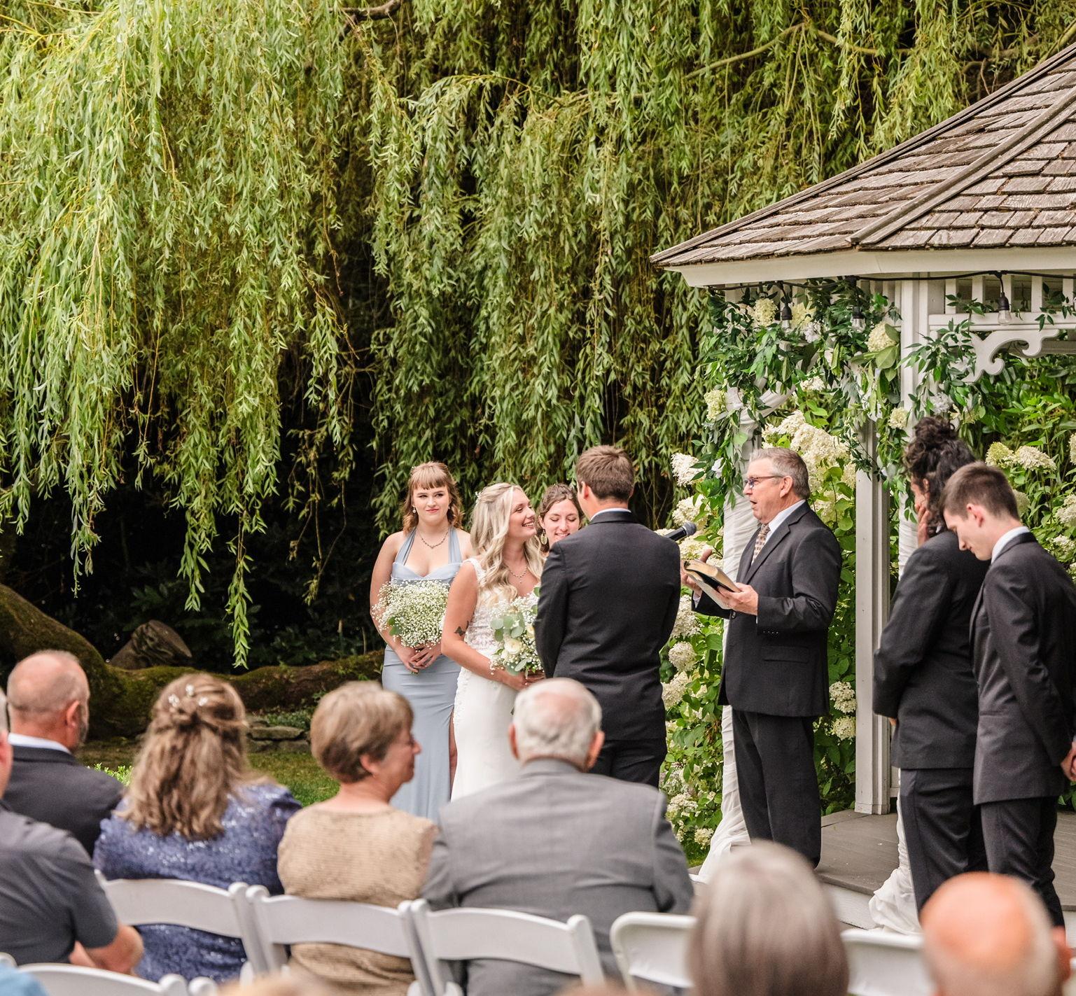 • The Ceremony: Our gazebo garden is an intimate setting for your wedding lending itself to that garden feel with a seating capacity of 200 guests. Our Grand Room is another option when Washington weather challenges your wedding day! Our classic design offers all the elegance you desire ensuring your day is memorable. • The Reception: The Carriage Room, affectionately called our Party Room, has housed many memorable meals and an evening of dancing. What stories these walls could tell! This main room for your wedding festivities houses up to 200 comfortably. We also set up overflow dinners in our Grand Room and boast outdoor dining in our center courtyard for your guests.