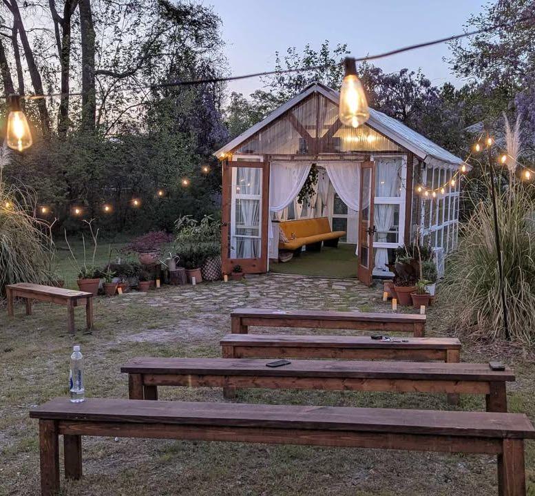 The Greenhouse Venue is located in Smiths Station Alabama on one acre of land with one beautiful intimate unique greenhouse. Have an elopement, micro wedding, bridal shower or photoshoot. Experience this little gem!