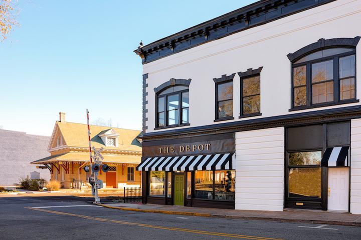 The Market at Grelen is thrilled to announce the opening of its newest venture, The Grelen Depot. With historic preservation, art and beauty in mind, this versatile property was thoughtfully renovated and designed by Grelen Co-Owner, Leslie Gregg. Her objective was to enhance the charm and character of the lovely Main Street by creatively restoring this classic old-world structure situated in the historic town of Orange, Virginia. The Grelen Depot boasts high ceilings, ample natural light, an art gallery, bar and lounge areas as well as a loft space with a range of seating options. Each space has its own distinct personality and all can be used for a variety of events including weddings, rehearsal dinners, holiday parties, workshops, corporate retreats, and more. The Depot also features a luxury suite, called The 118. This space has a living room, bedroom and glamorous full bath.