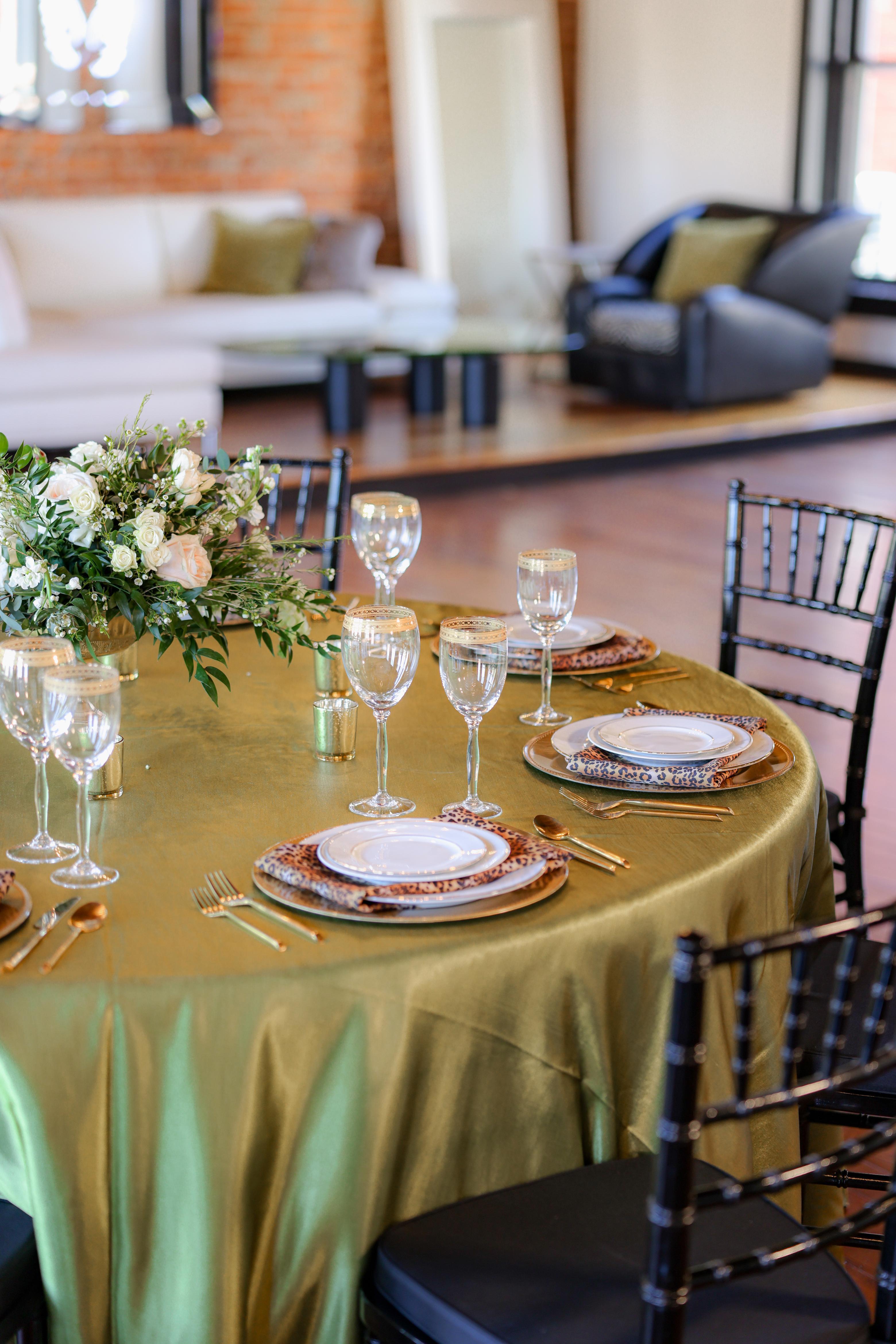 Included in the venue fee for the Gallery are: Six 8' farm tables (each table seats 8 people) Six 6' round tables (each table seats 8-10 people) 70 black chiavari chairs with cushions Included in the venue fee for the Lounge are: Two 2'x 6' marble cocktail tables (moveable with permission) Two permanent corner lounge areas One permanent large bar with 6 bar stools