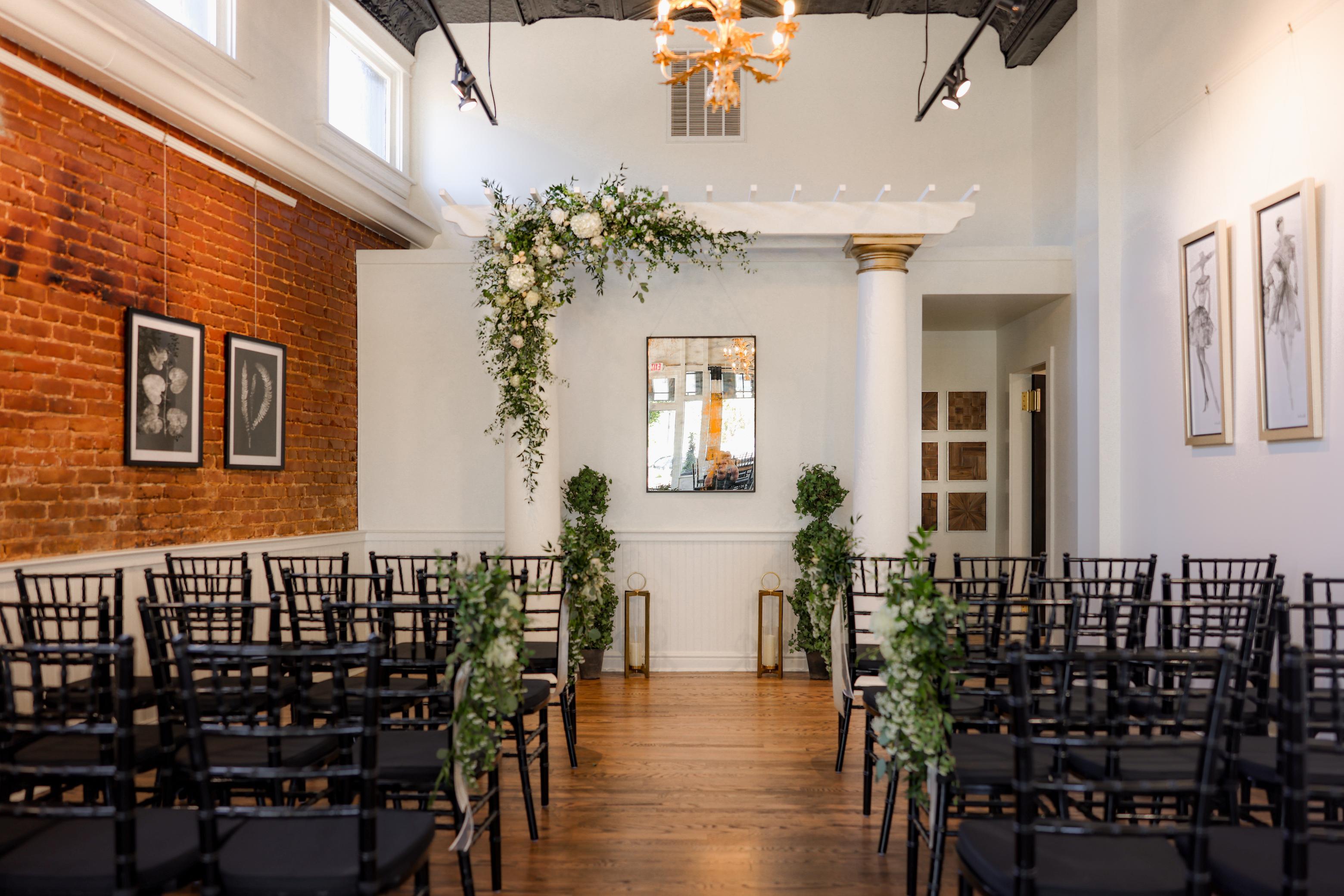 Situated on the first floor of The Depot, The Gallery is a grand event space exuding an elegant art gallery ambiance and featuring a beautiful built-in arbor. This versatile space can be utilized for both wedding ceremonies and large dinner receptions. The Gallery pairs seamlessly with The Lounge, its neighboring event space, connected through a gorgeous vintage door, providing the perfect setting for any celebration.
