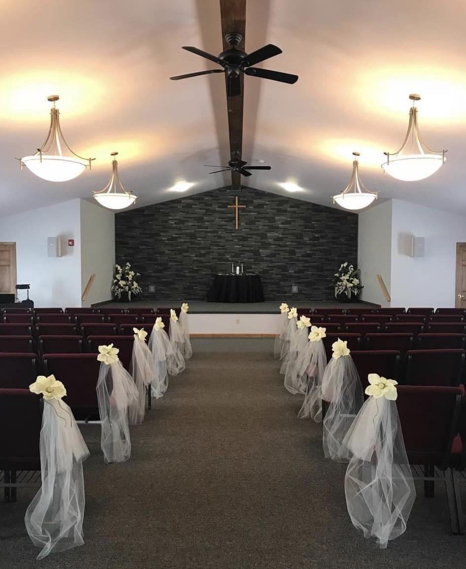 Our chapel is ceremony ready and can be decorated to your theme. Climate control space provides a great start to your forever.
