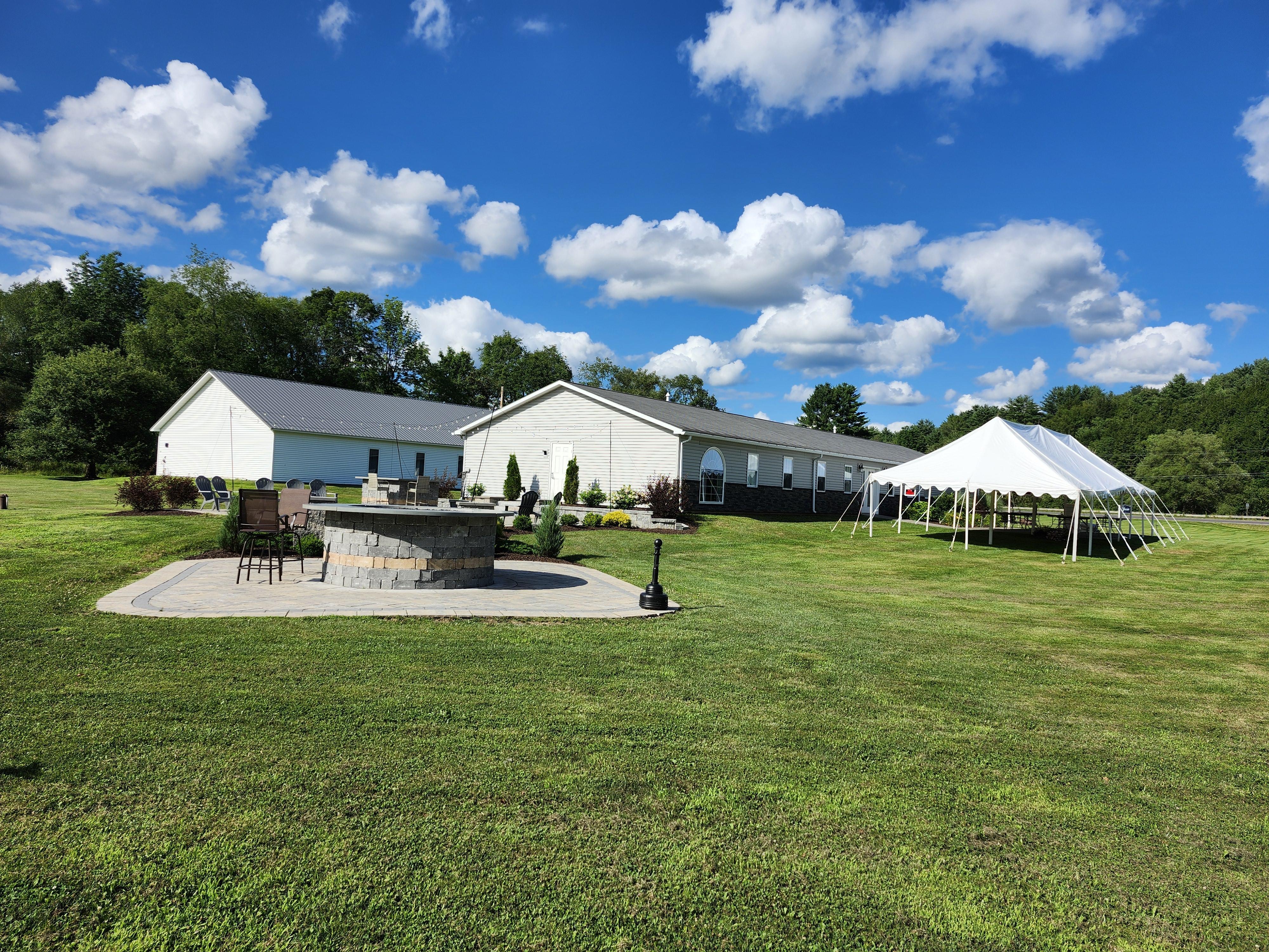 Everything on one property! Rehearsal, ceremony, celebration, and farewell. Welcome to The Grove where you can create a wedding and ceremony as unique as you! All day exclusive access to the property for Friday and Saturday with optional extended Sunday rental for brunch and farewell activities. Beautiful back patio for cocktail hour with propane fire pit and bar plus side patio! On-site ceremonies (indoor and outdoor) and receptions. Non-denominational Chapel and climate controlled Reception Hall. Two Wedding Dressing Rooms for both parties to prep. Full kitchen for catering, tables and chairs for up to 150, food service tables, dance floor and bars. Large, well kept lawns, can accommodate larger tent weddings of 150-300 guests. Onsite parking. Let's celebrate together at The Grove of Butternut Valley in Morris NY.